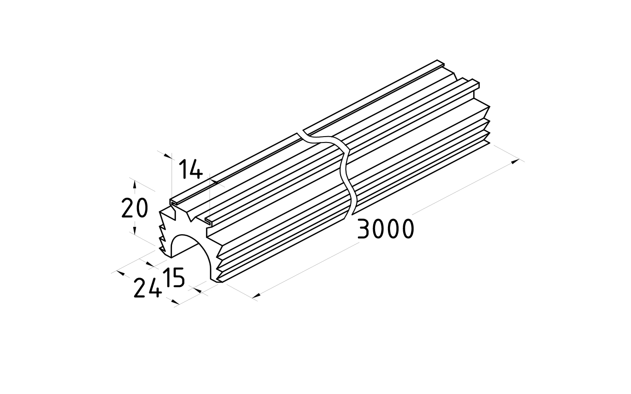 Коннектор для поручня с пазом 24х24 (хлыст 3 метра) k777-2