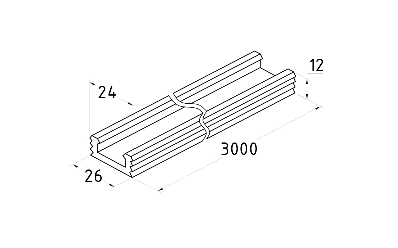 Рассеиватель света для трубы с пазом 24х24, плоский (хлыст 3 метра)