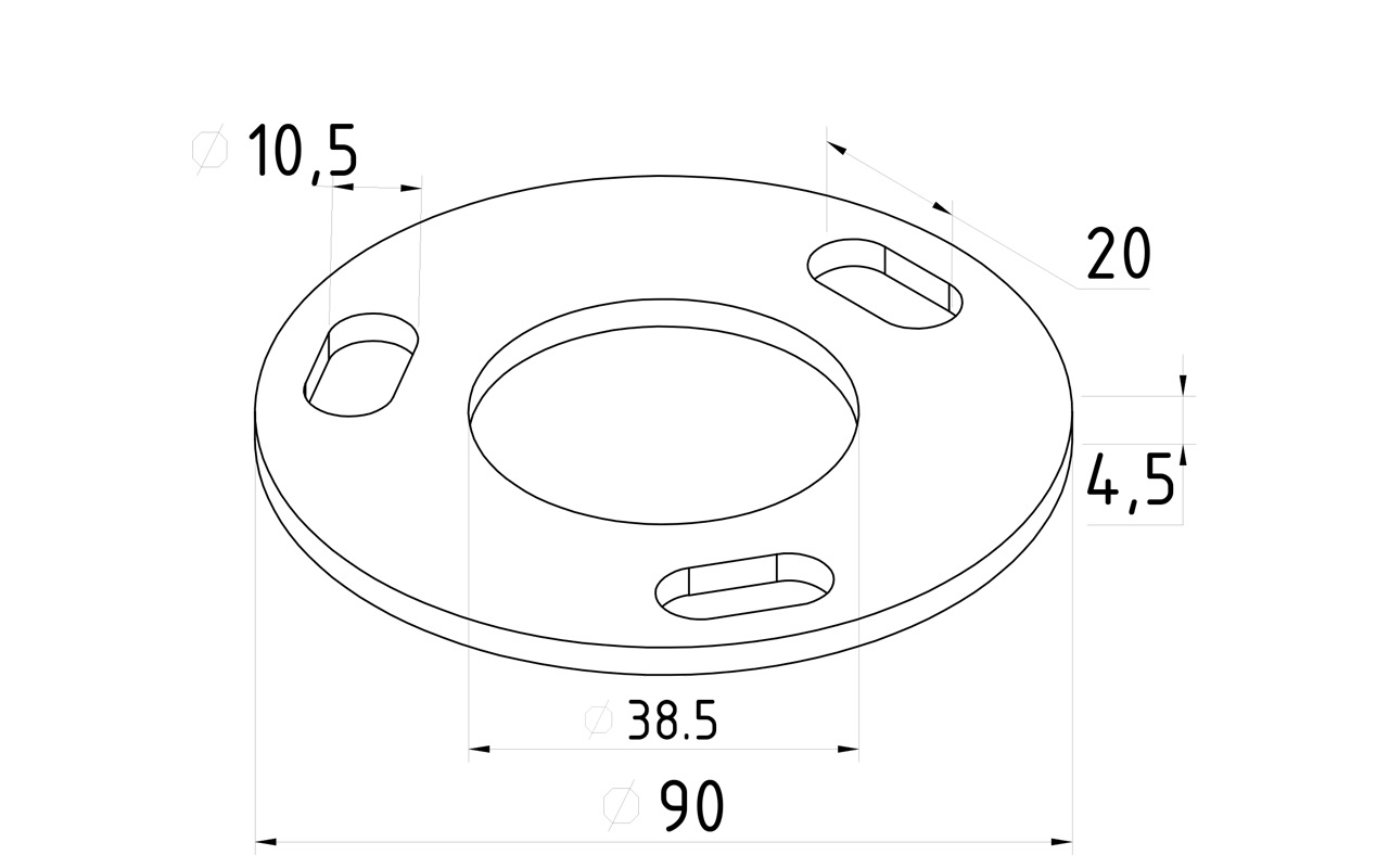 Фланец стойки 38/90х5 (4.3) х AISI 304 #200 3 отв. М10 х 20 k116-38-5