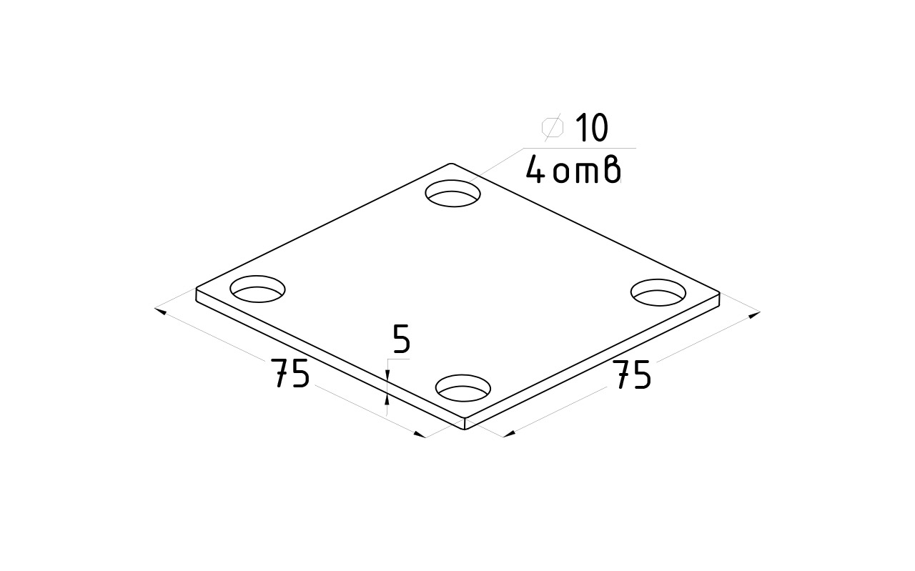 Фланец стойки 75х75х5 (4.3).Способ сборки - самосбор. Марка стали - AISI 304. Деталь имеет 4 отверстия. k115-5 аналог Ф-0115