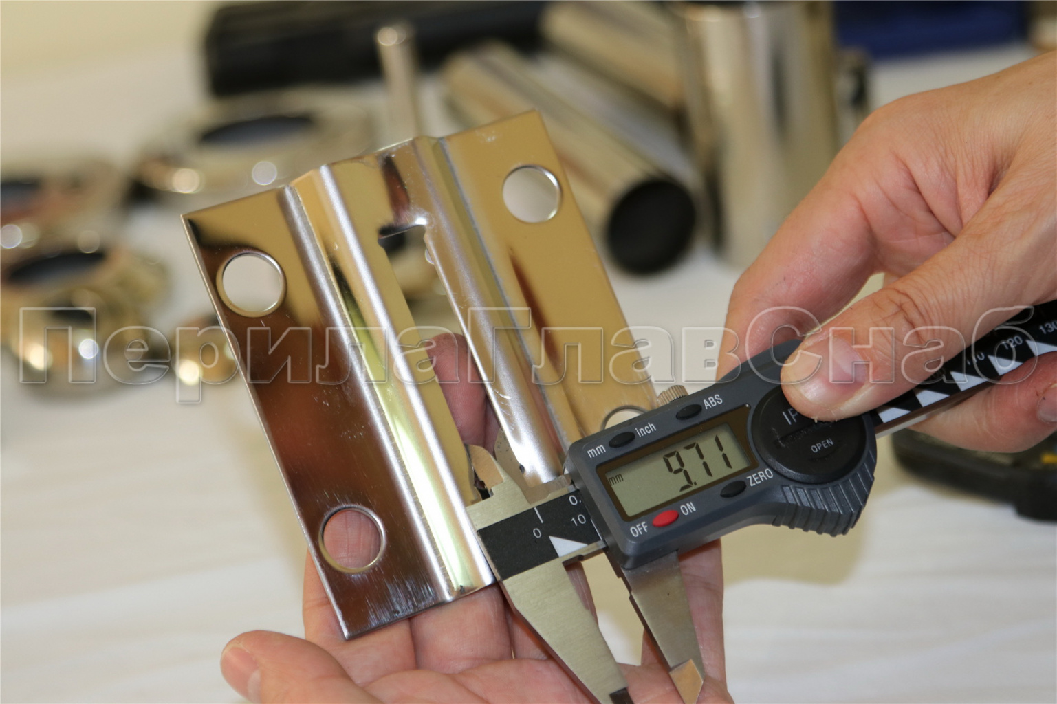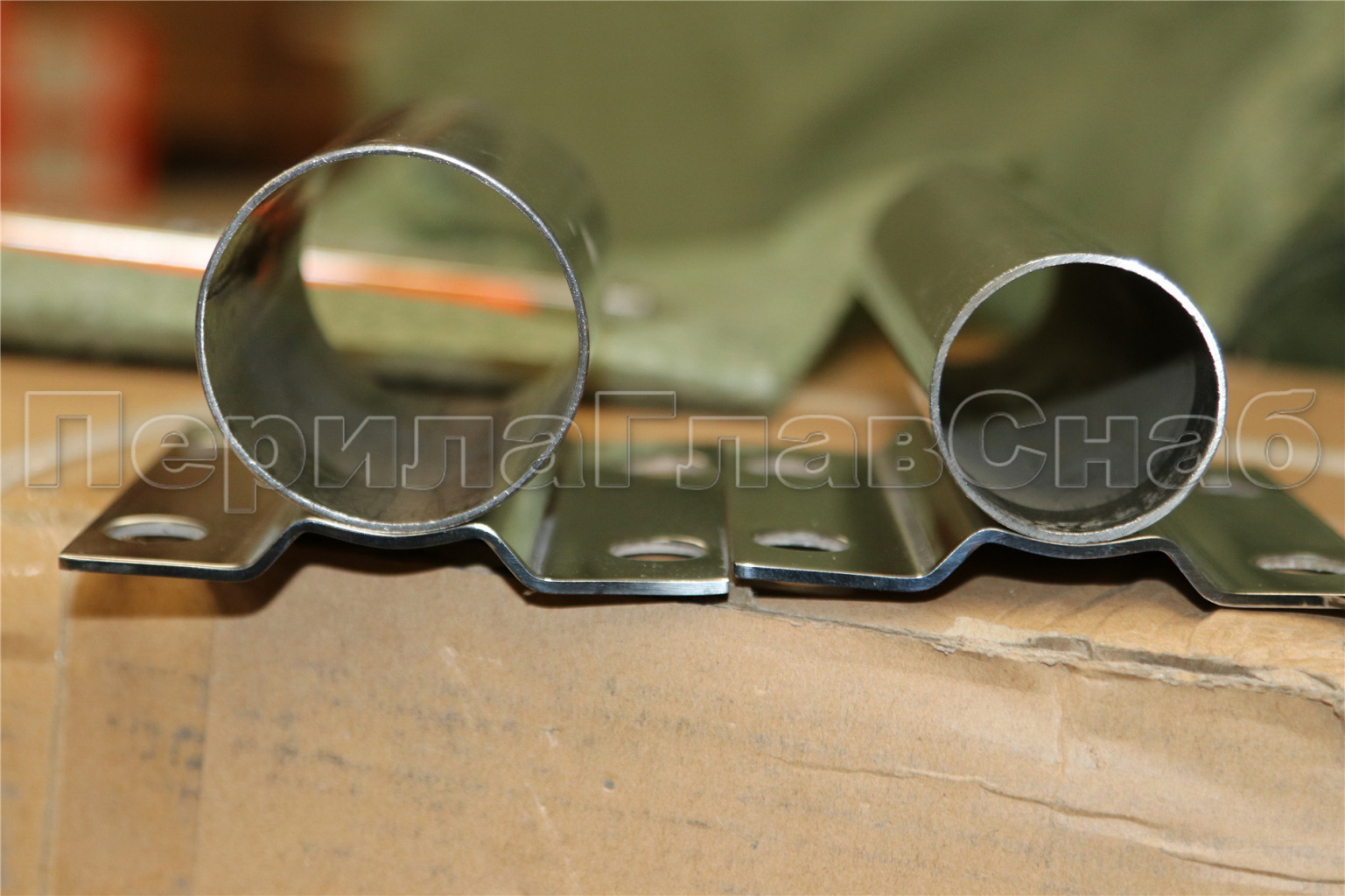 Цанга под трубу Ø38.1 мм, полированная #600, AISI 304, 3 отв.Ø7 мм, 3 отв. Ø9 мм, k026