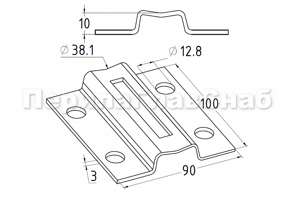 90х100х3 мм, вынос 7.3 мм, отверстия Ø12.8 мм