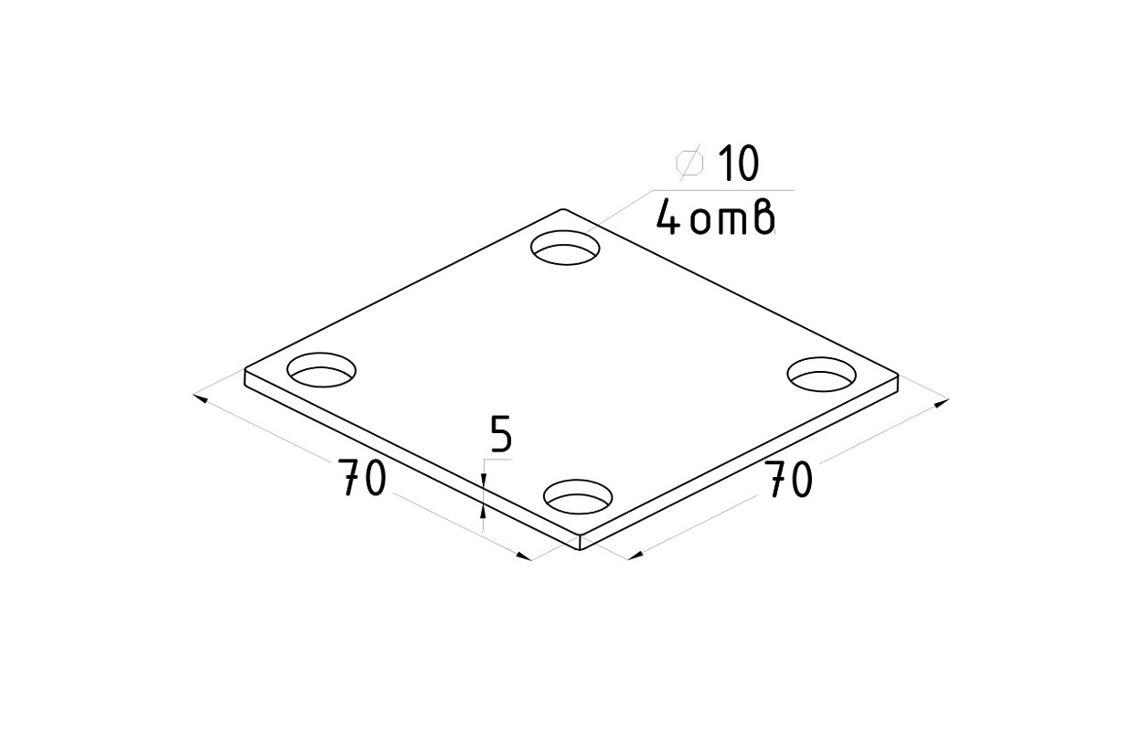 Фланец стойки 71х71х5 (4.3), AISI 304, 4 отв. М10 k115-4