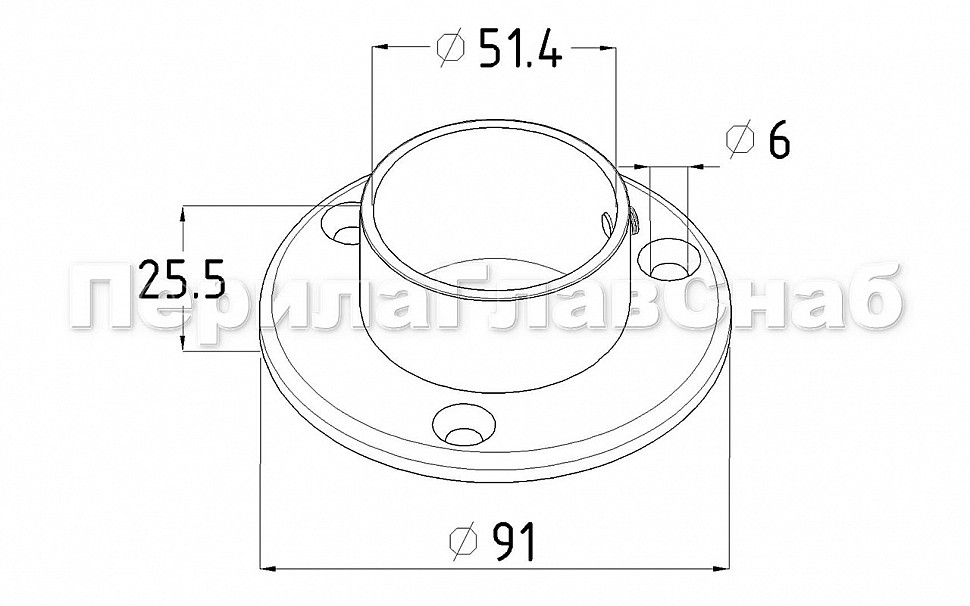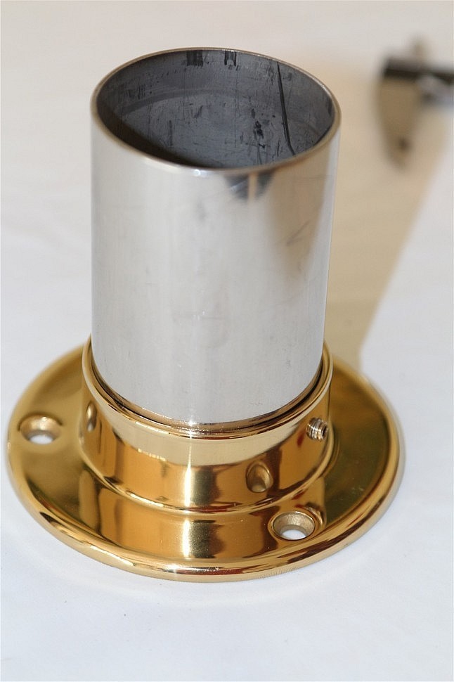 К этому фланцу не нужны никакие крышки и накладки, так как деталь вполнена методом литья и имеет очень презентабельный вид. Универсальность посадочного отверстия позволяет применять этот фитинг в сочетании с деревянным или пластиковым поручнем.