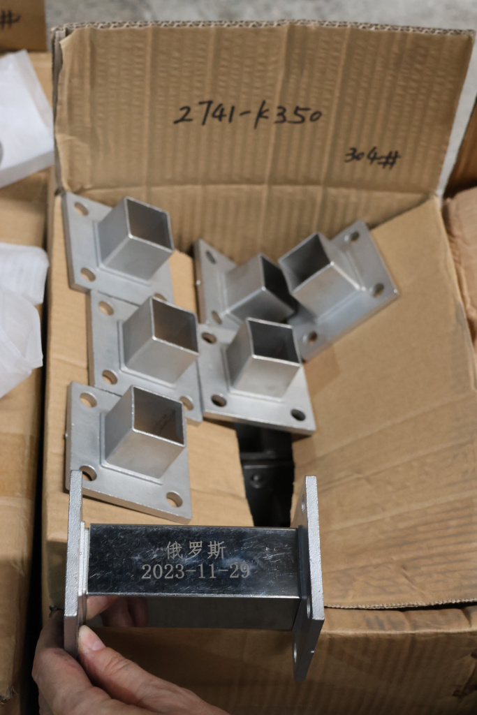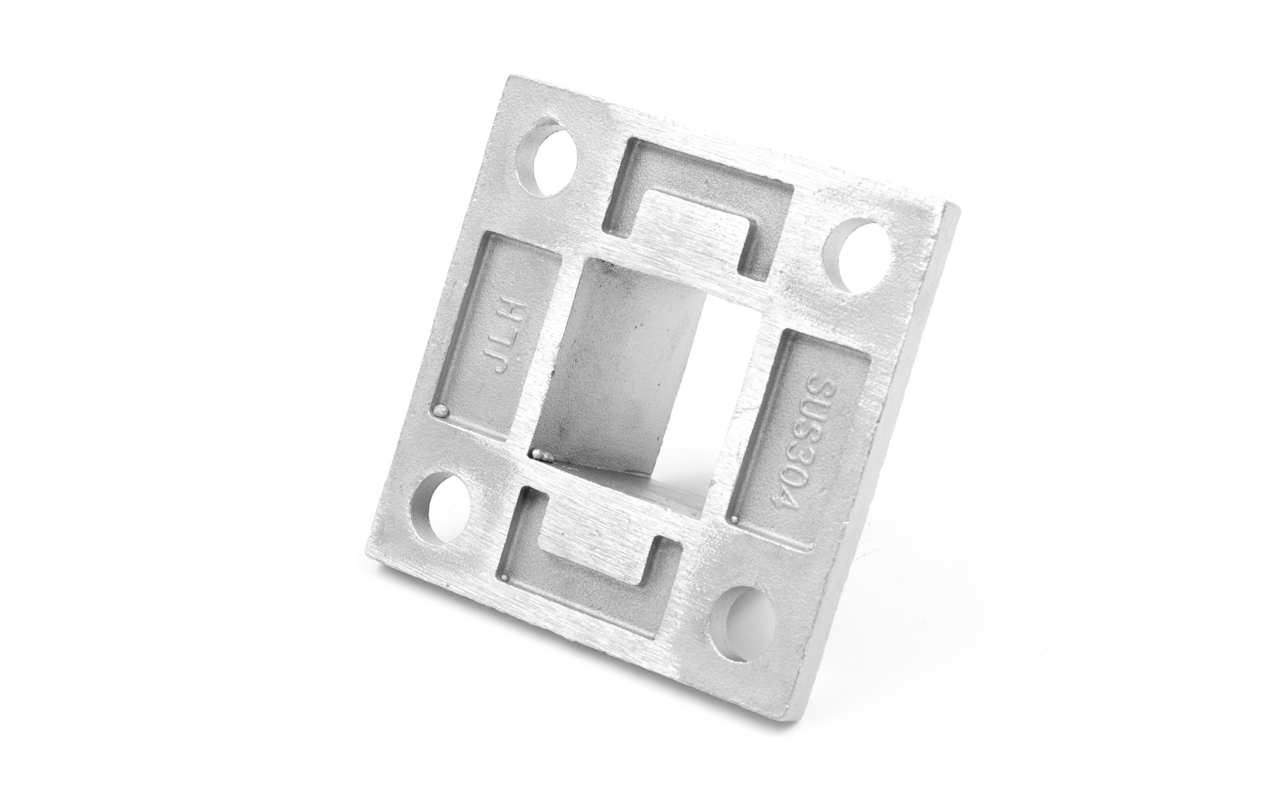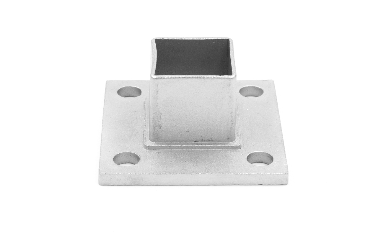 Фланец для трубы 40х40 мм с четырьмя отверстиями. Деталь литая, шлифованная, закладная под стойку. Марка стали - AISI 304