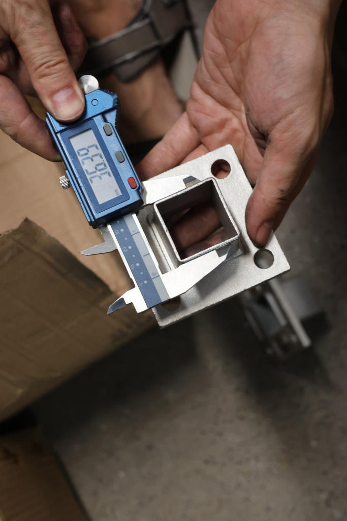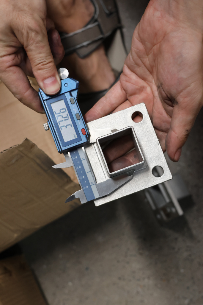 Наконечник на стойку из профильной трубы 40х40 мм, с регулируемым ложементом под плоскость, литой, полированный, нержавеющий AISI 304 k222-3 купить в Москве