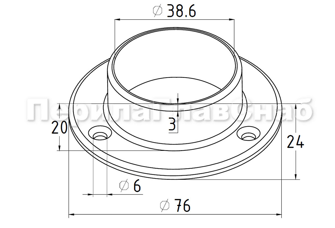 Фланец стойки 38/90 х 5 (4,3) х AISI 304 #200 3 отв х М10 х 20 k116-38-7 купить в Москве