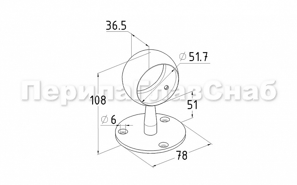 Держатель поручня выносной с обхватом для трубы Ø50.8 мм, полированный (AISI 316) k066-3
