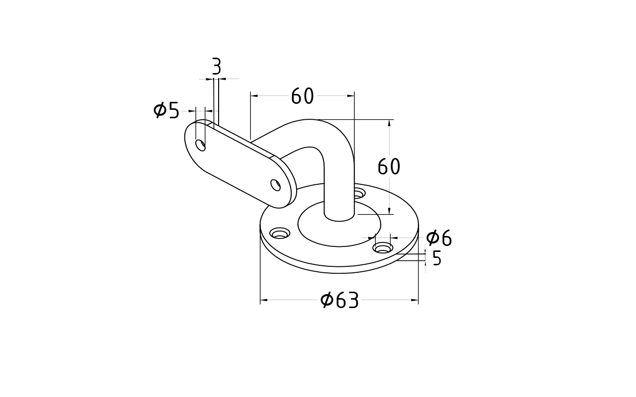 Пристенок с ложементом на плоскость, вынос 65х65, Ø60х3 мм, сварной, нержавеющая сталь AISI 304 полированная k234-5