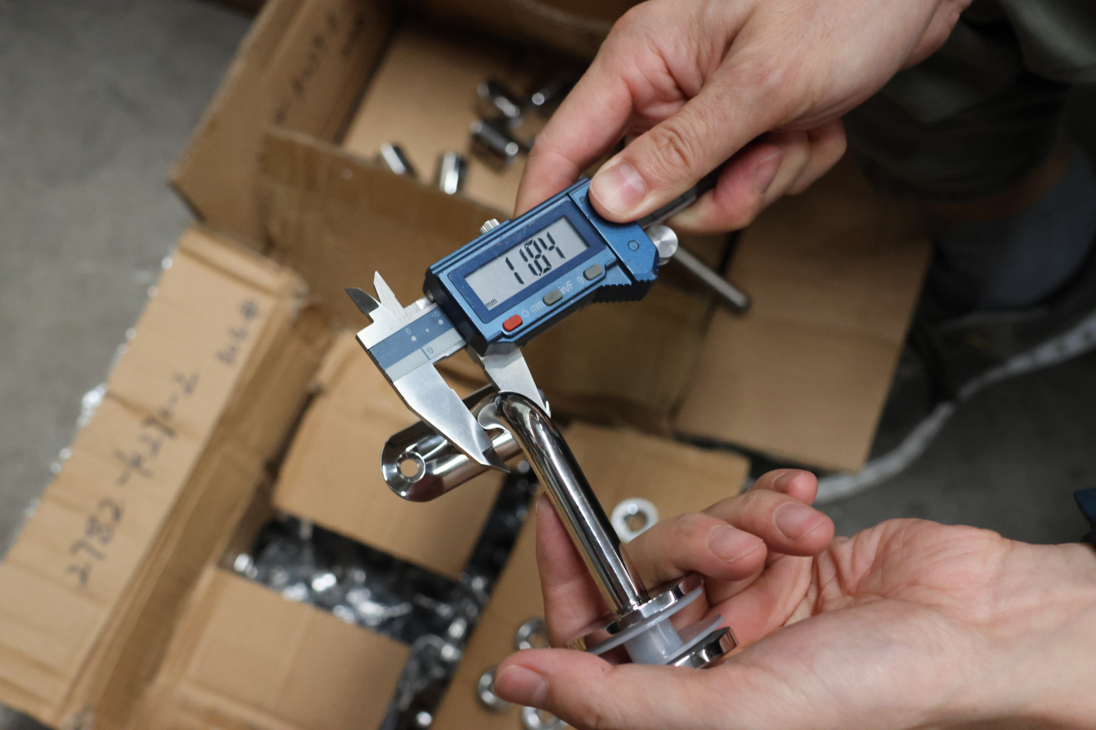 Для установки бокового держателя в стекле сверлится отверстие диаметром 17 мм, затем пристенок фиксируется затяжной гайкой в торце фланца. А сам поручень приваривается к загнутому наконечнику фитинга.
