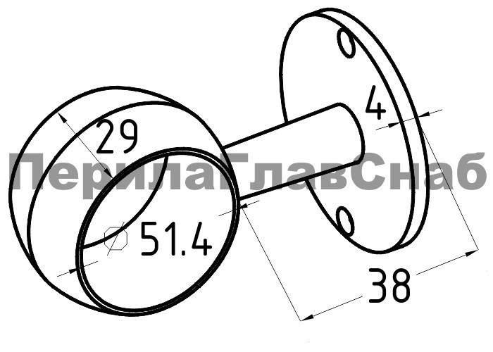 Пристенный держатель с обхватом поручня Ø50.8 мм, литой