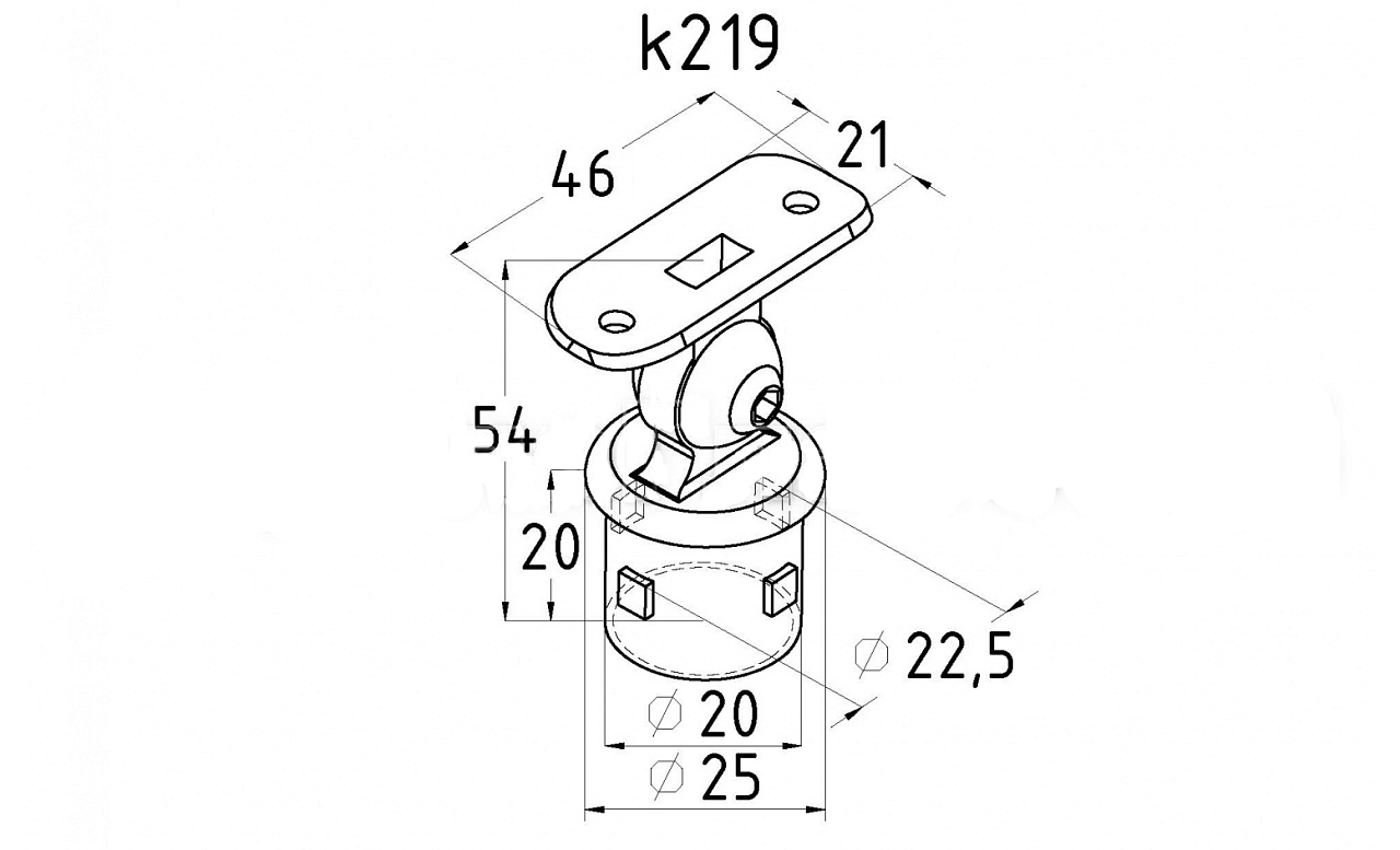 Наконечник палец с регулируемым ложементом, литой, под стойку Ø25.4х1.5 мм, полировка 600 GRIT, нержавеющий AISI 304 k219