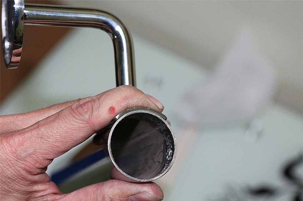 Пристенок с ложементом под трубу диаметром 38.1 мм, отверстия в фланце для самореза с потайной головкой. Деталь полированная, сварная. Марка стали - AISI 304.