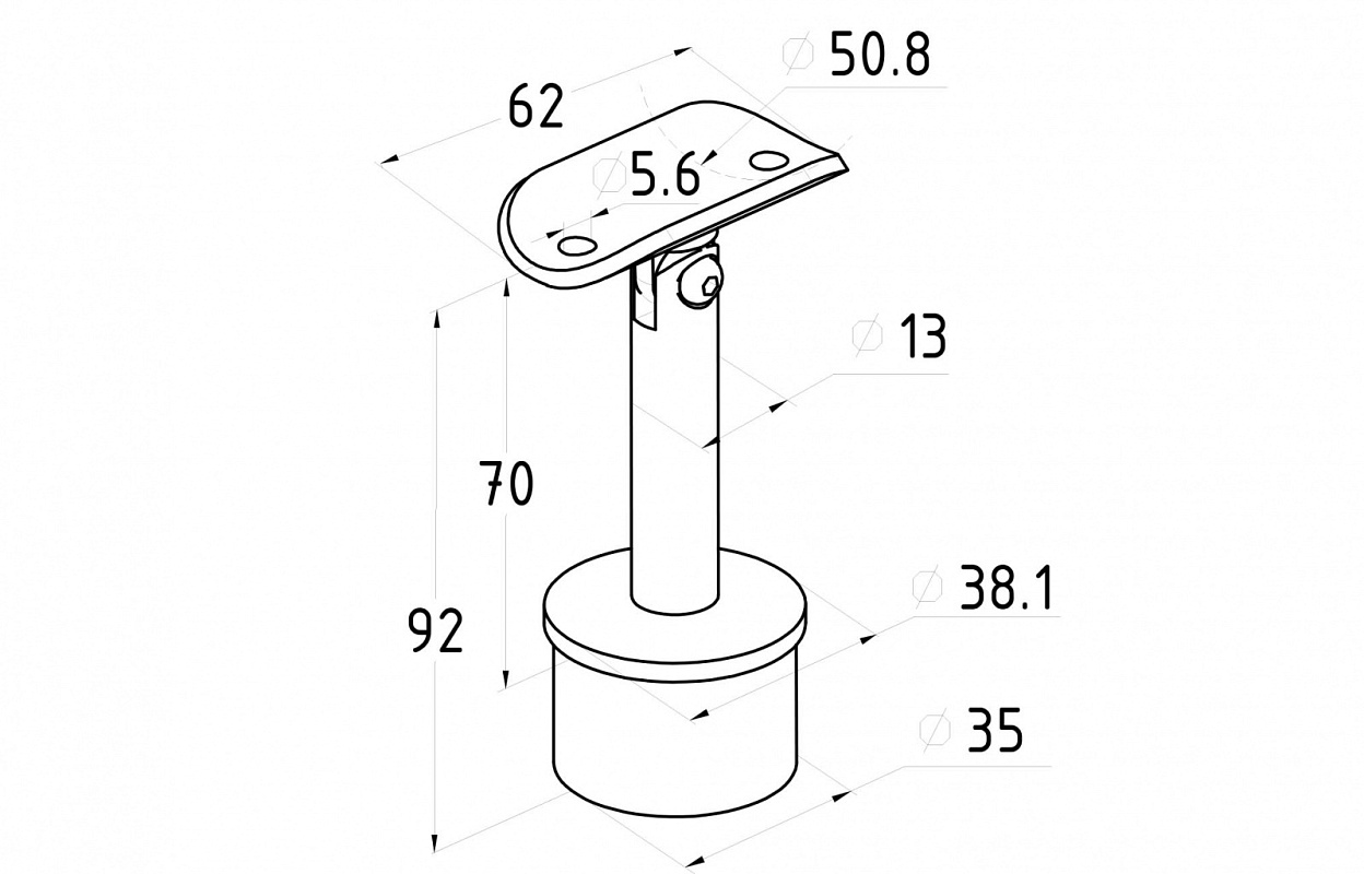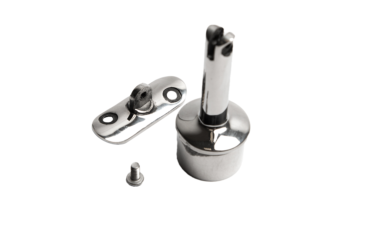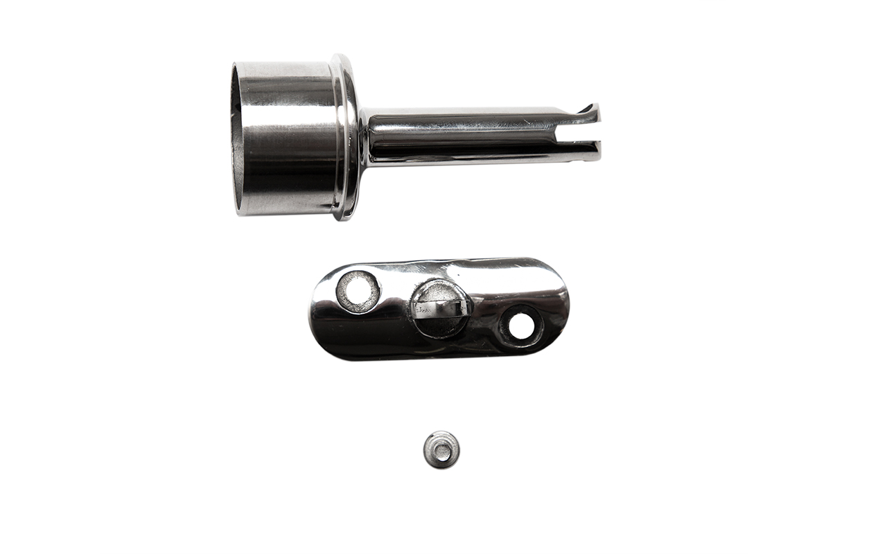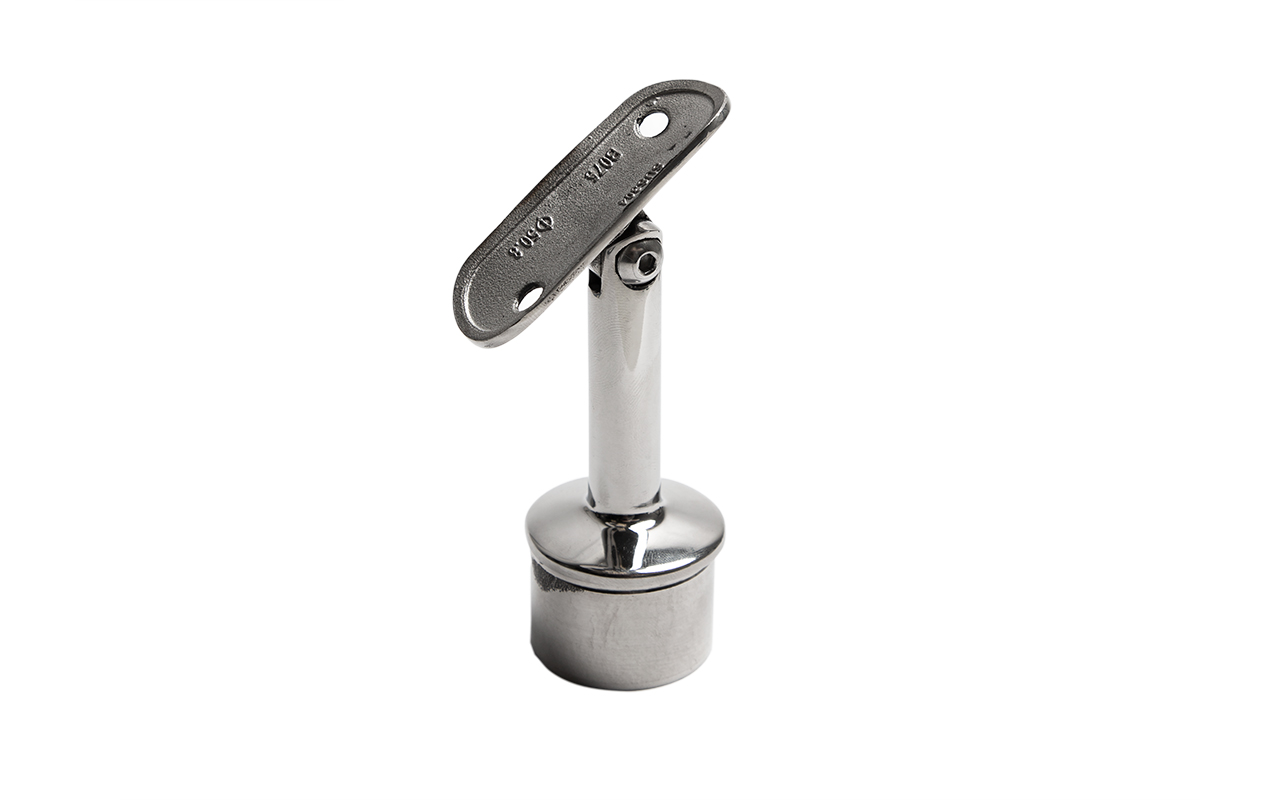 Наконечник палец с регулируемым ложементом под поручень Ø38.1-42.4 мм, на стойку Ø38.1х1.5 мм, литой, полированный, нержавеющий (AISI 304) k006-7