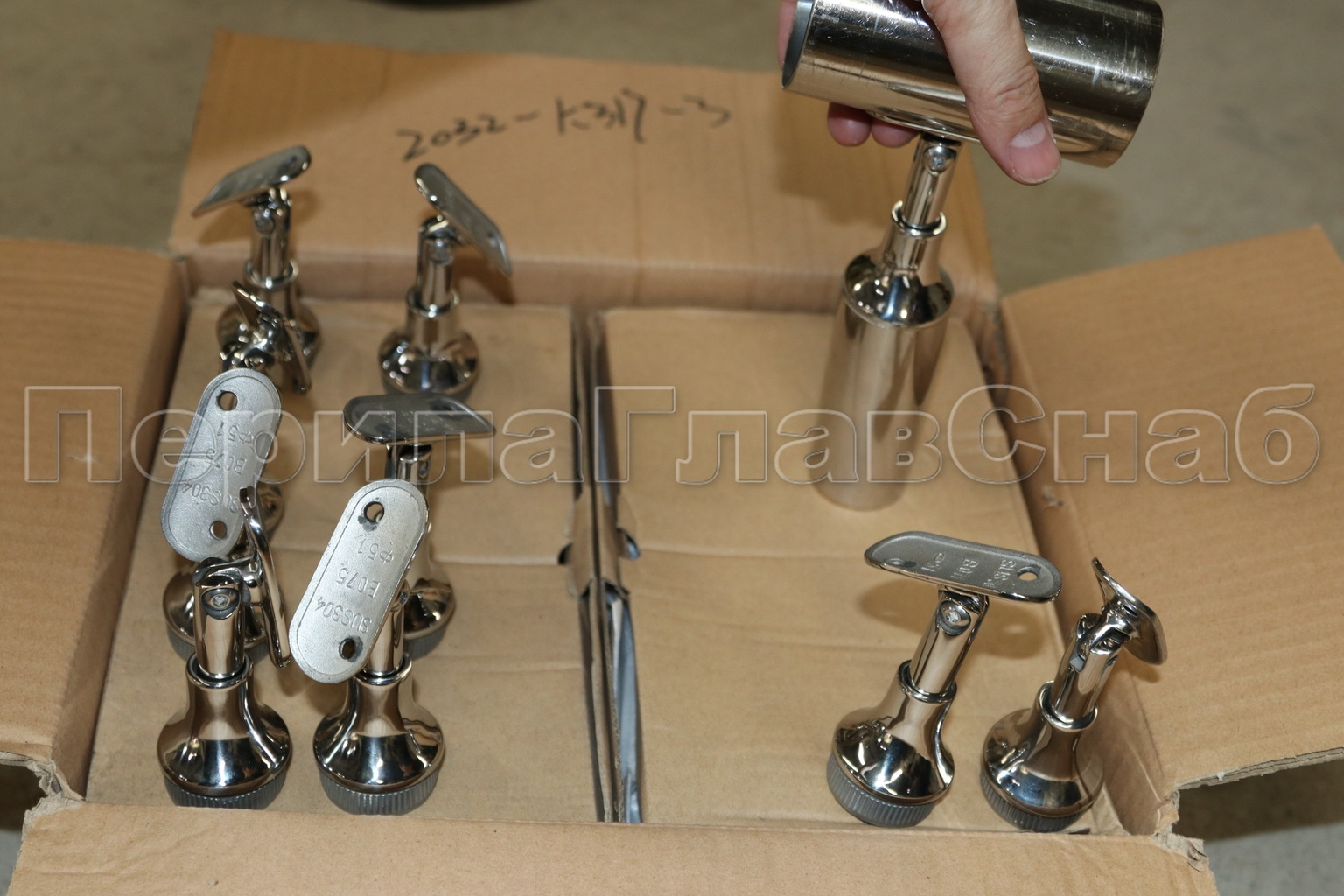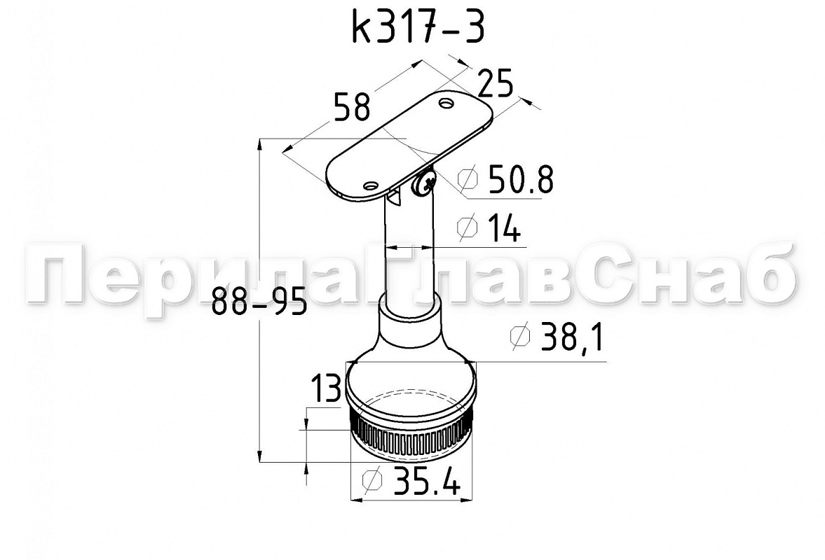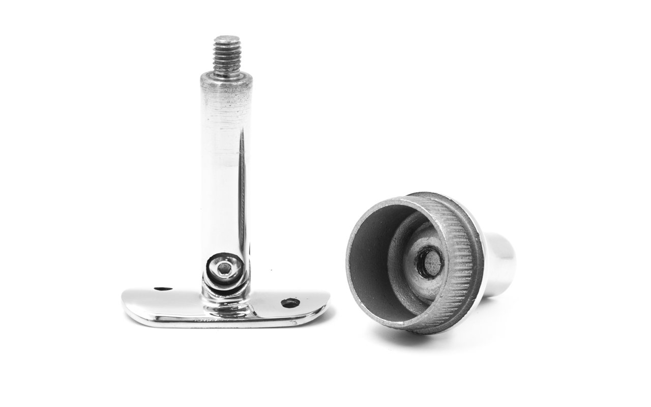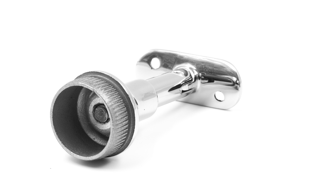 Наконечник регулируемый по высоте на стойку Ø38.1х1.5 мм, с регулируемым ложементом под поручень Ø50.8 мм, литой, полированный, нержавеющий (AISI 304) k317-3