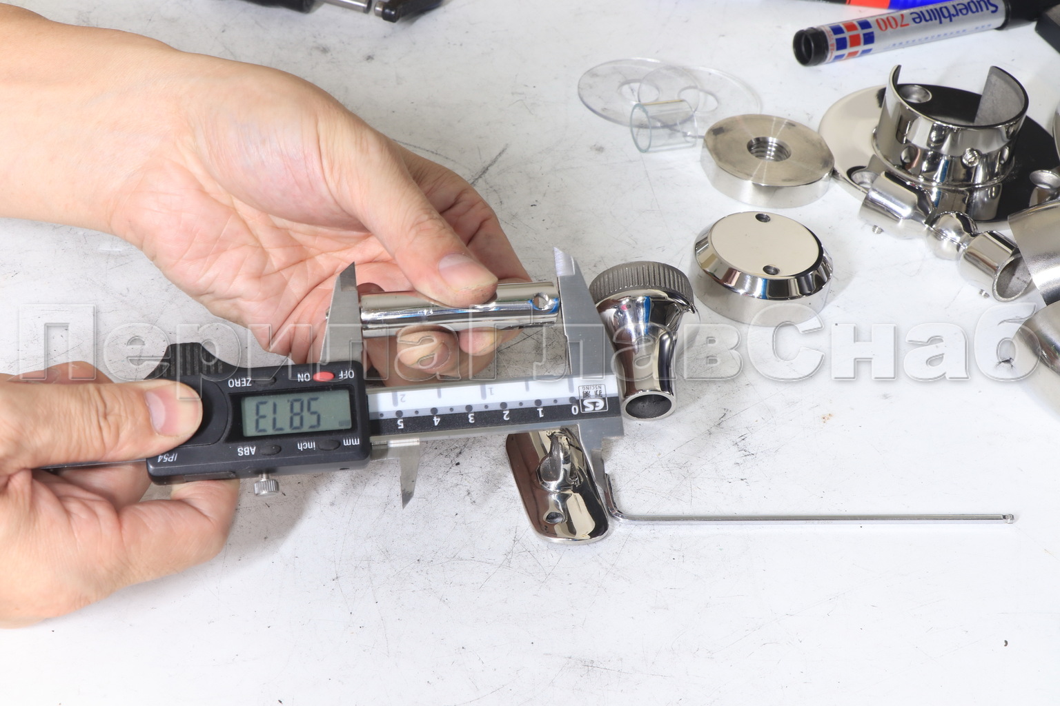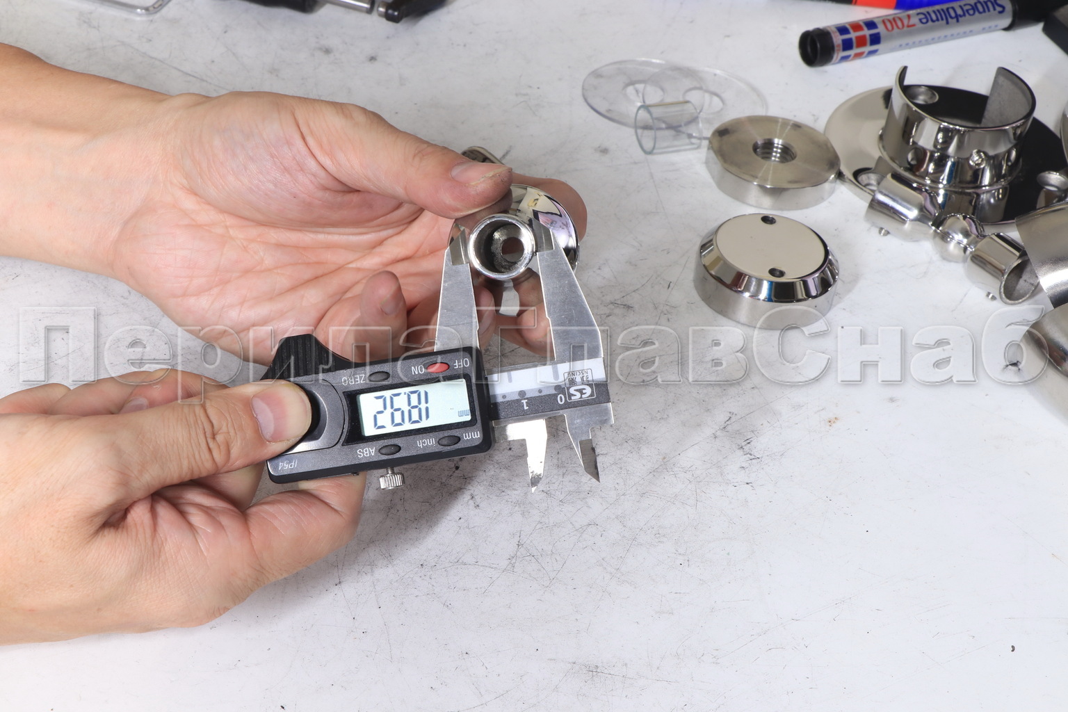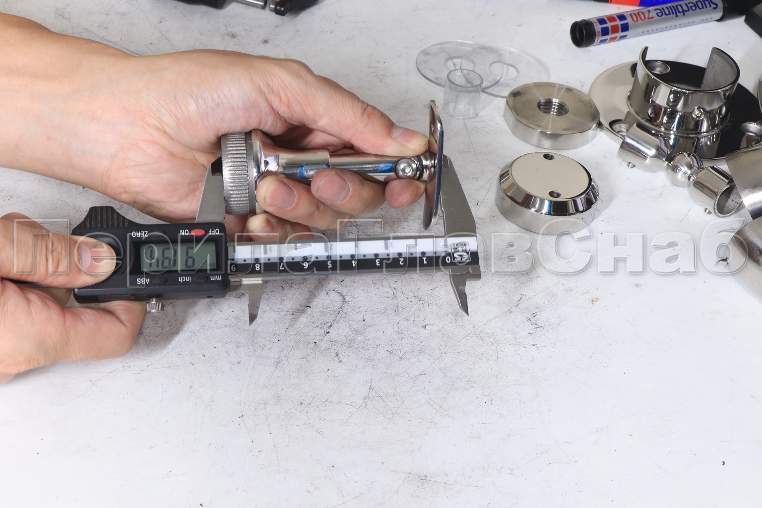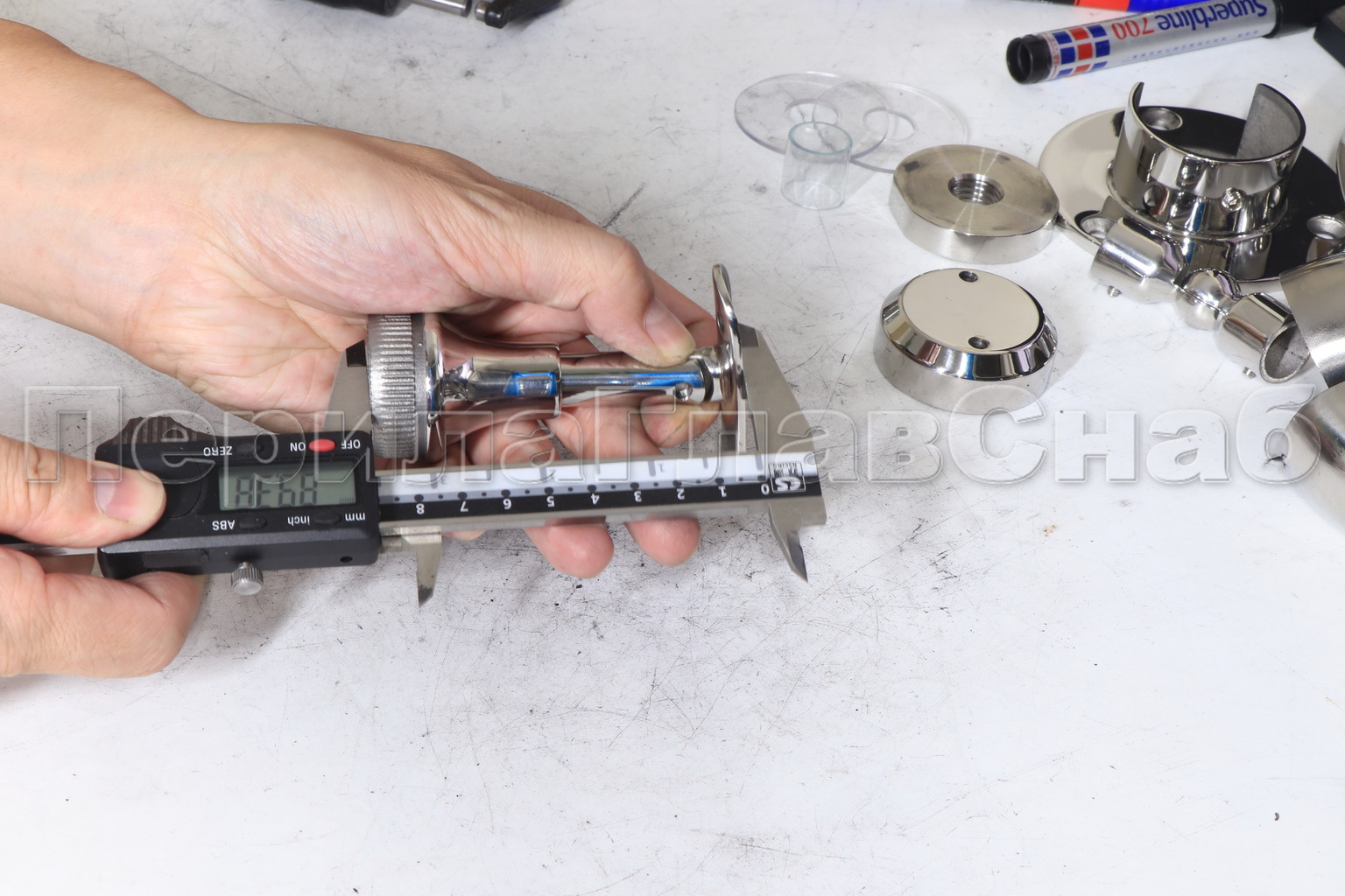 Наконечник регулируемый по высоте на стойку Ø38.1х1.5 мм, с регулируемым ложементом под поручень Ø50.8 мм, литой, полированный, нержавеющий (AISI 304) k317-3