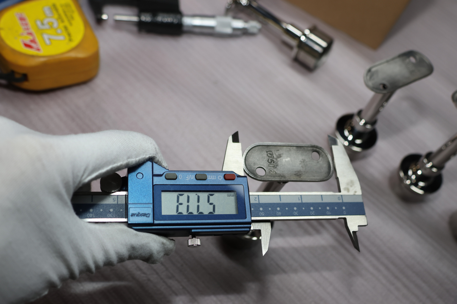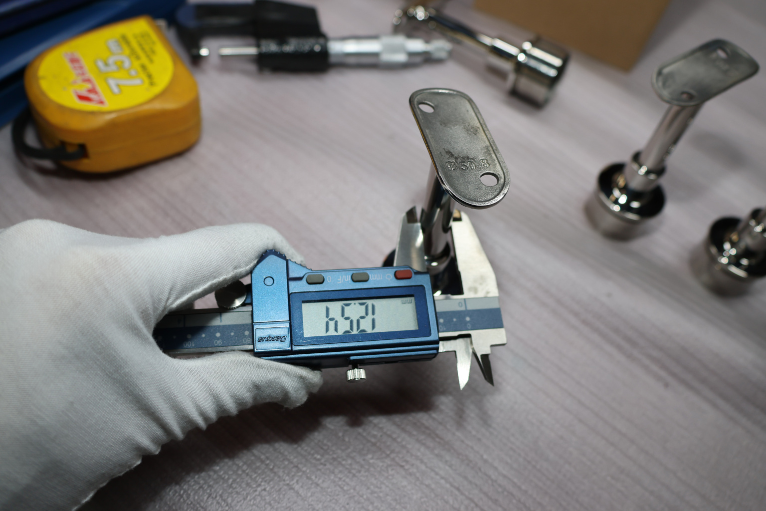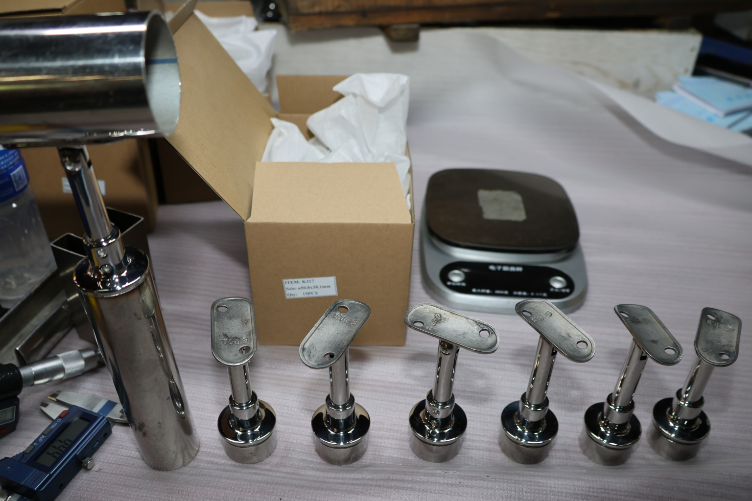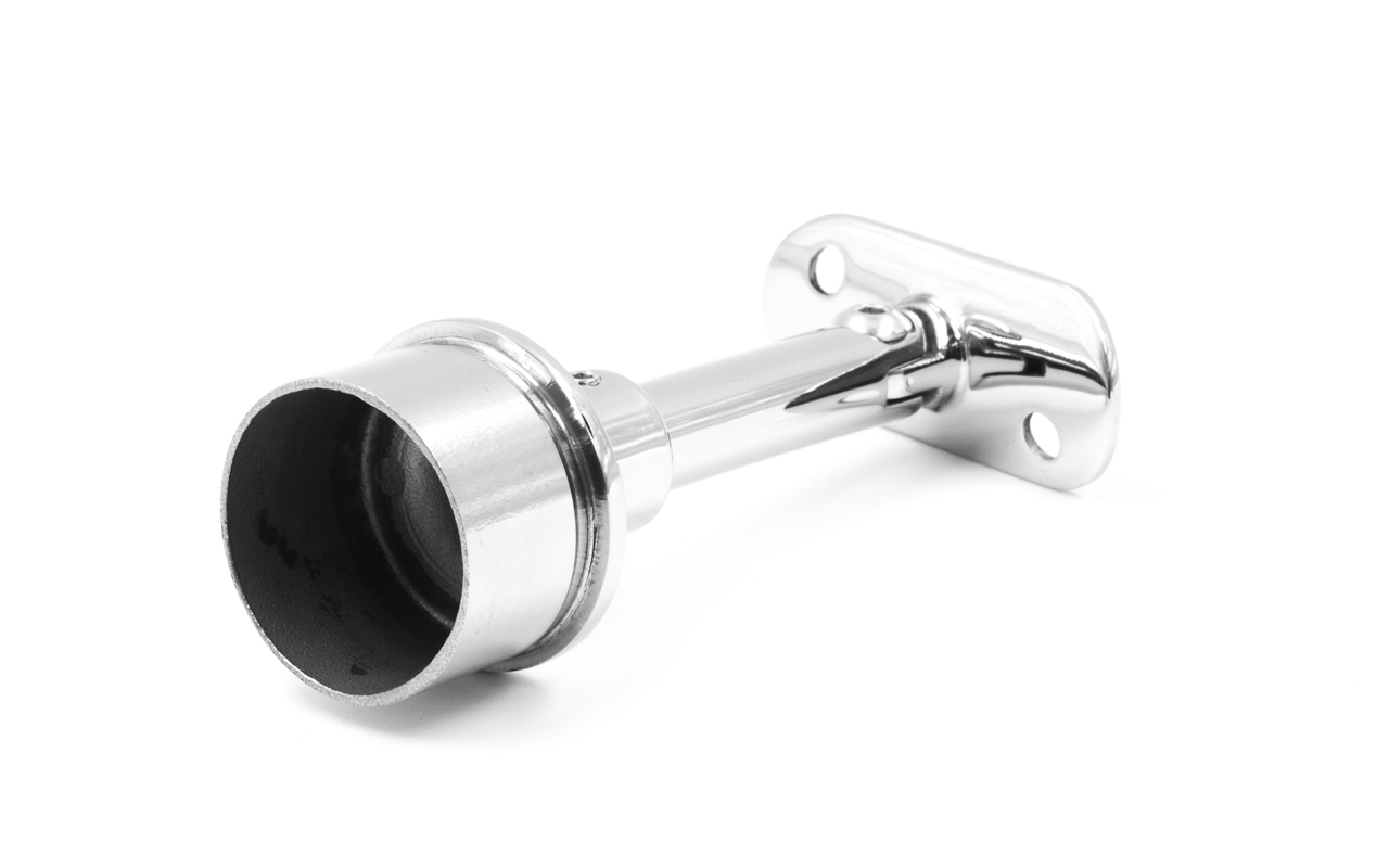 Наконечник регулируемый по высоте на стойку Ø38.1х1.5 мм, с регулируемым ложементом под поручень Ø50.8, литой, полированный, нержавеющий (AISI 304) k317