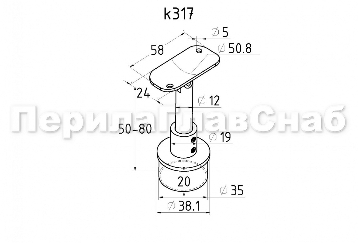 Наконечник стойки "палец", регулируемый по высоте, Ø38.1 мм, с ложементом под поручень Ø50.8 мм