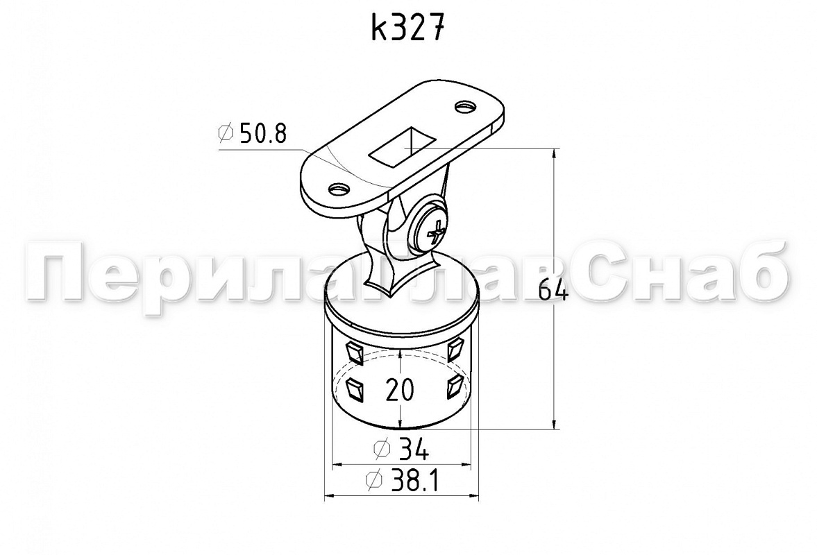 Наконечник Ø38.1 мм, шарнирный, полированный, (AISI 304) k327