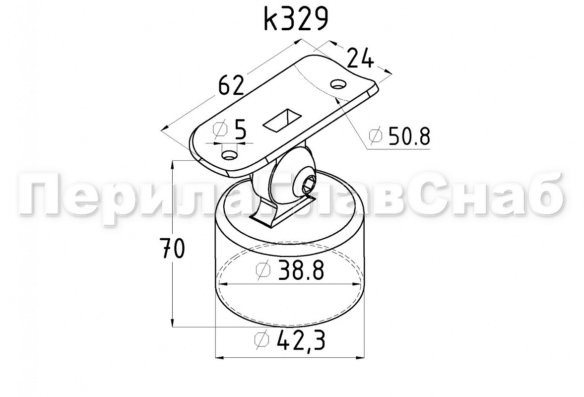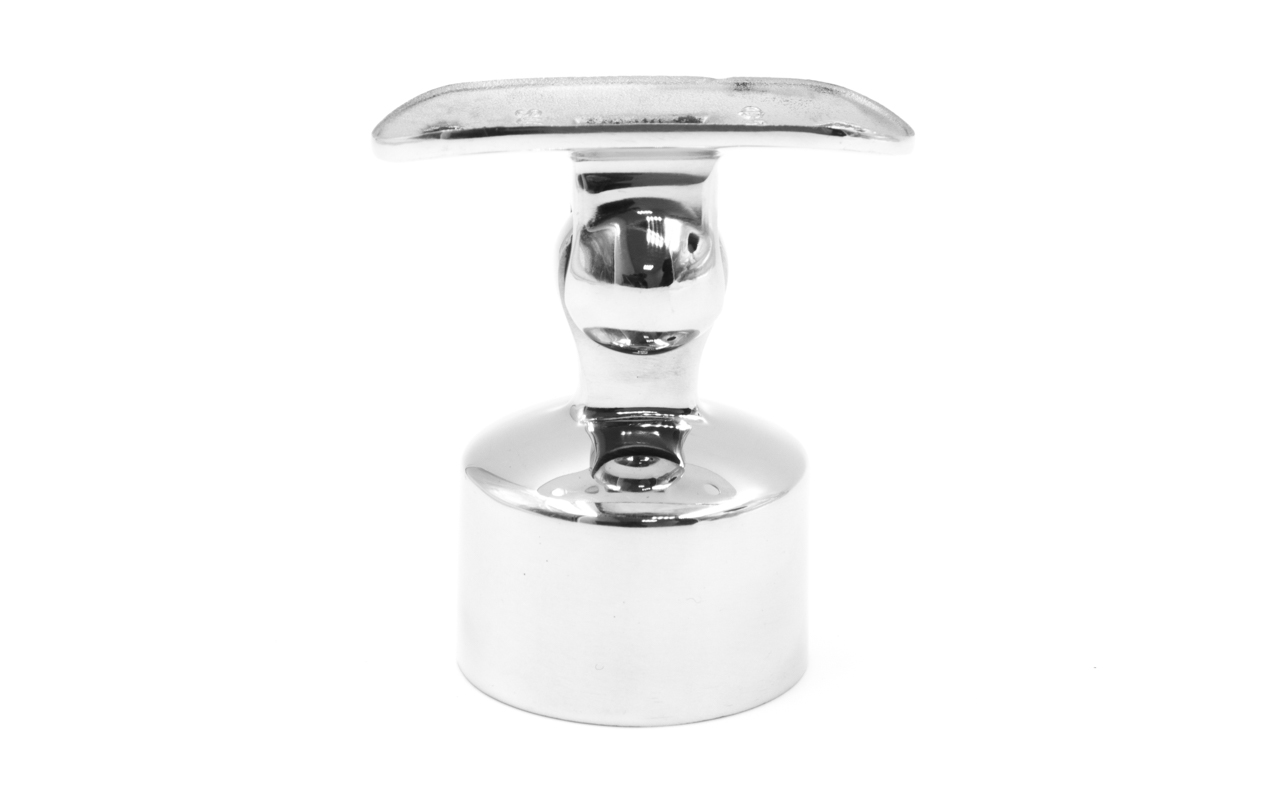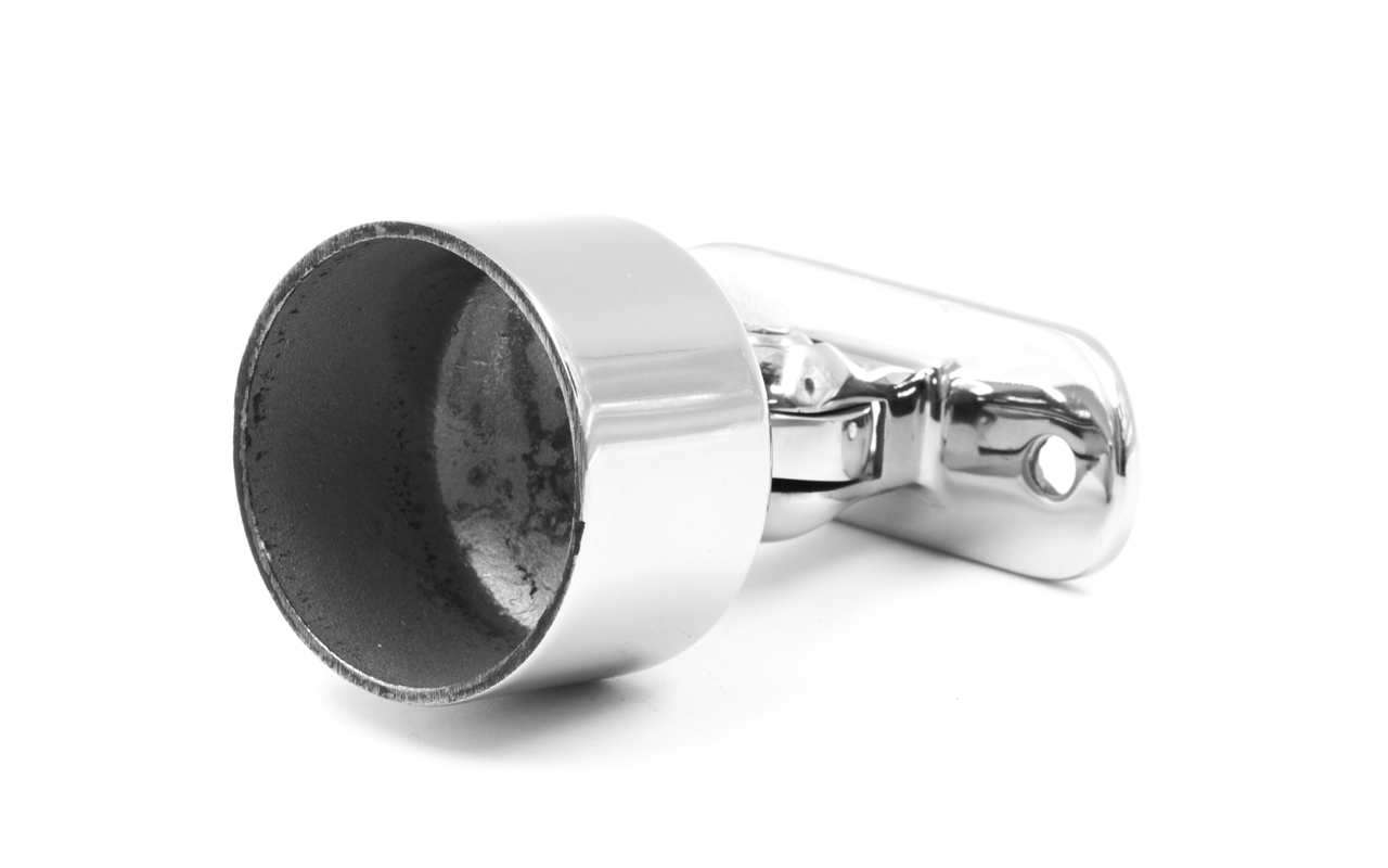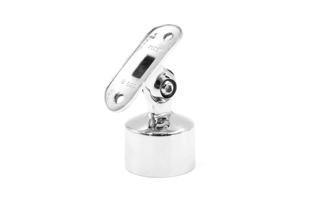 Наконечник шарнирный на стойку Ø38.1 мм, с ложементом под поручень Ø50.8 мм, наружный, литой, полированный, AISI 304, k329