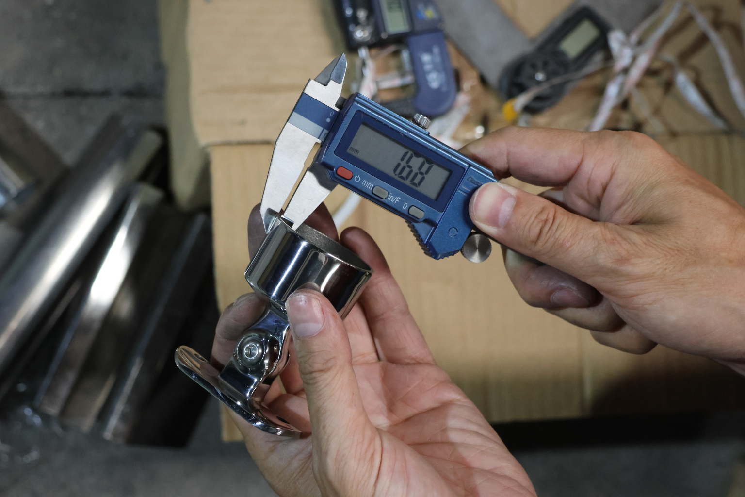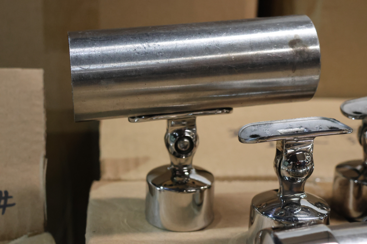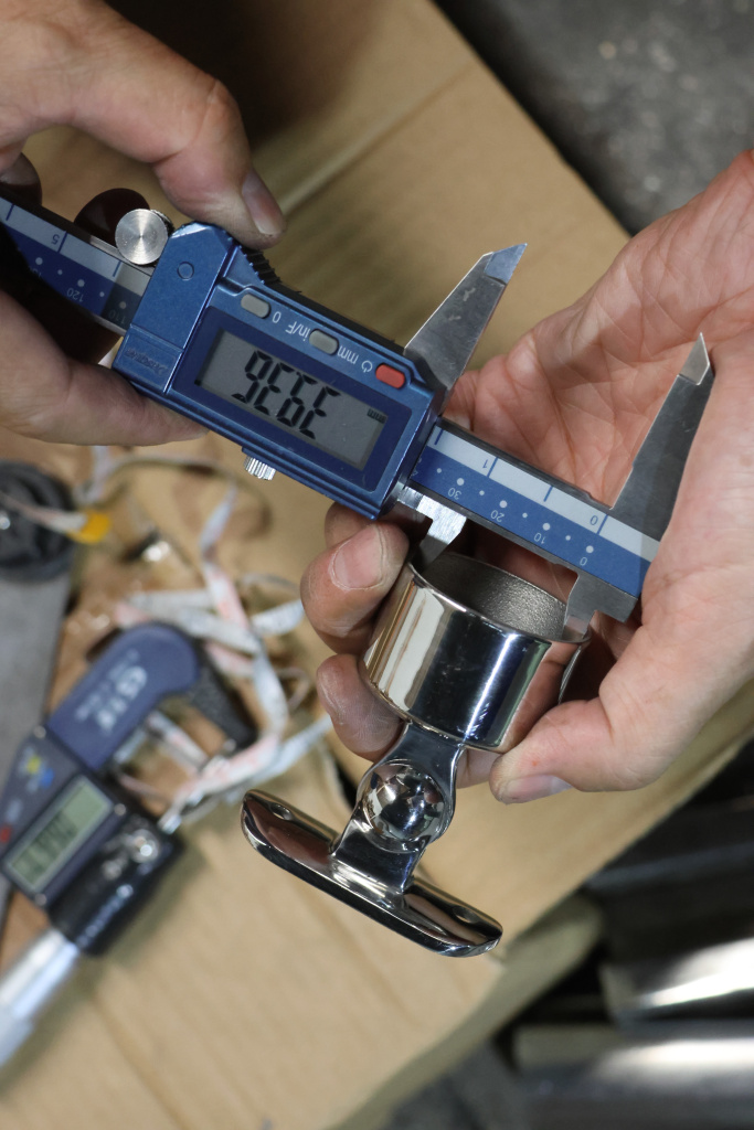 Наконечник шарнирный на стойку Ø38.1 мм, с ложементом под поручень Ø50.8 мм, наружный, литой, полированный, AISI 304, k329