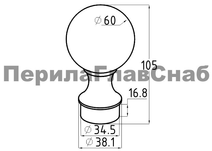 Наконечник шар на стойку Ø38.1 мм, литой, полированный, AISI 304 k070