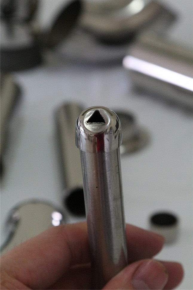 Наконечник штампованный (СПС) косой 30° на трубу Ø16 мм, для поручня Ø38.1 мм, полированный, нержавеющий, (AISI 201) k212-3