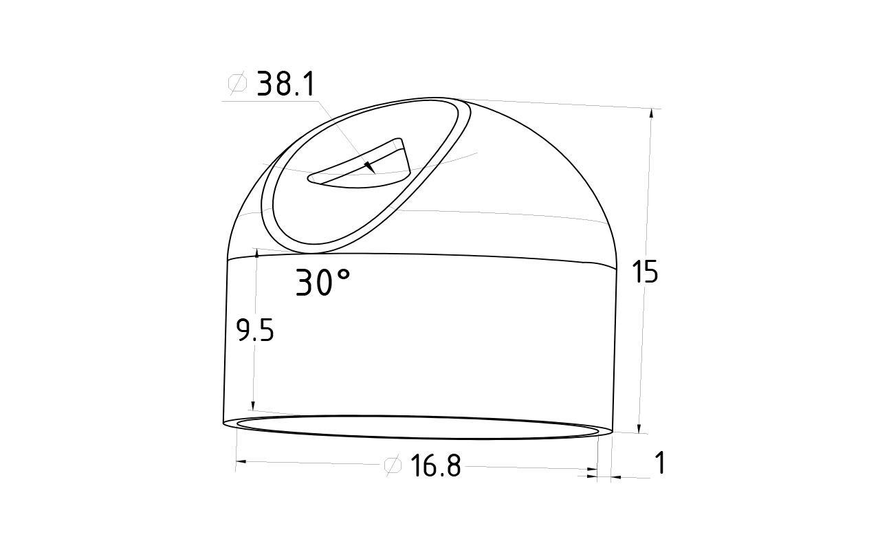 Наконечник штампованный под 30°, на стойку Ø16 мм, для поручня Ø38.1 мм