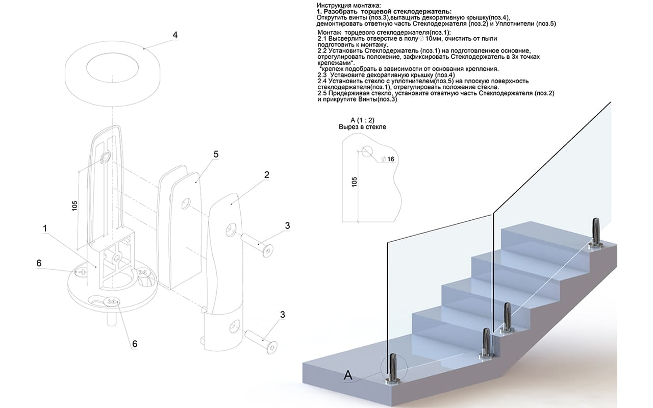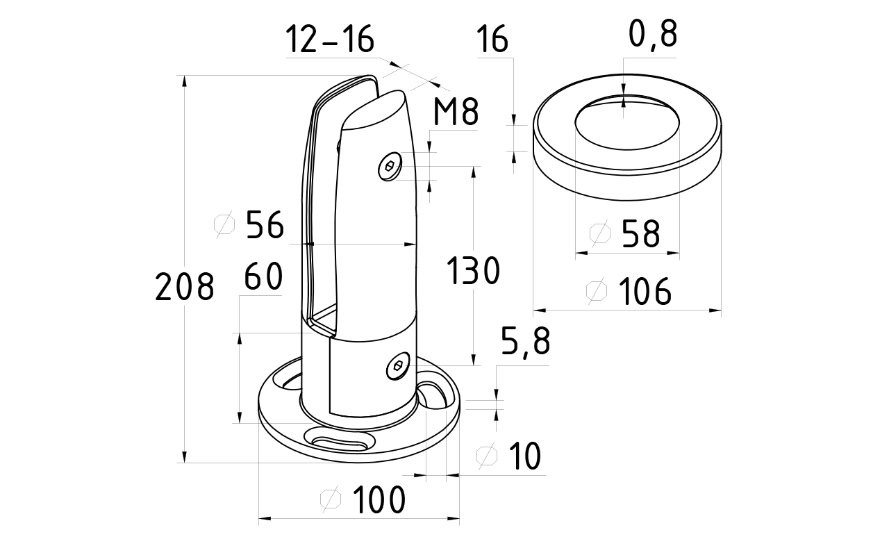 Стеклодержатель литой напольный, круглый, для стекла 12-16 мм, полированный (AISI 304) k176-2