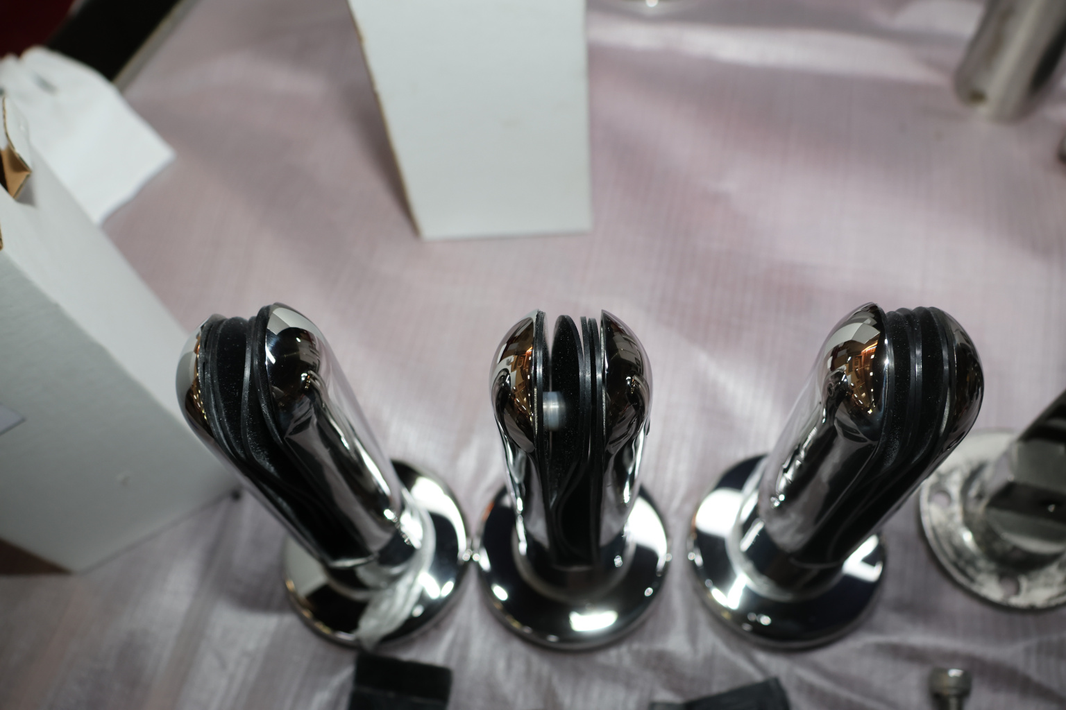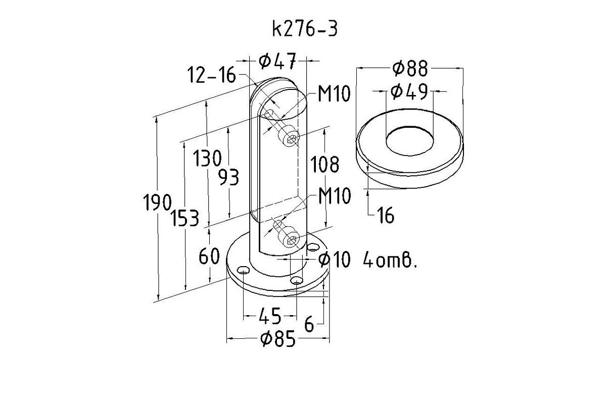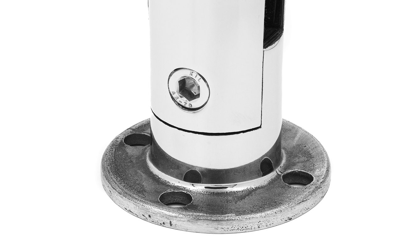 Стеклодержатель литой напольный, круглый Ø50х190 мм, полированный. Марка стали - AISI 304. В комплекте идут 4 уплотнителя: 2 пластиковых и два резиновых. Вам понадобиться для крепежа потайной винт под шестигранник k601-19-120