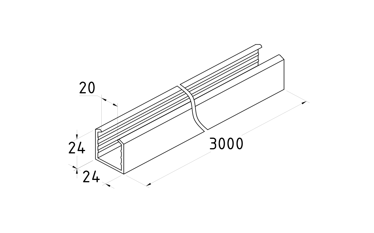Уплотнитель в поручень с пазом 24х24 для стекла 10+10мм ПВХ, черный Фk310