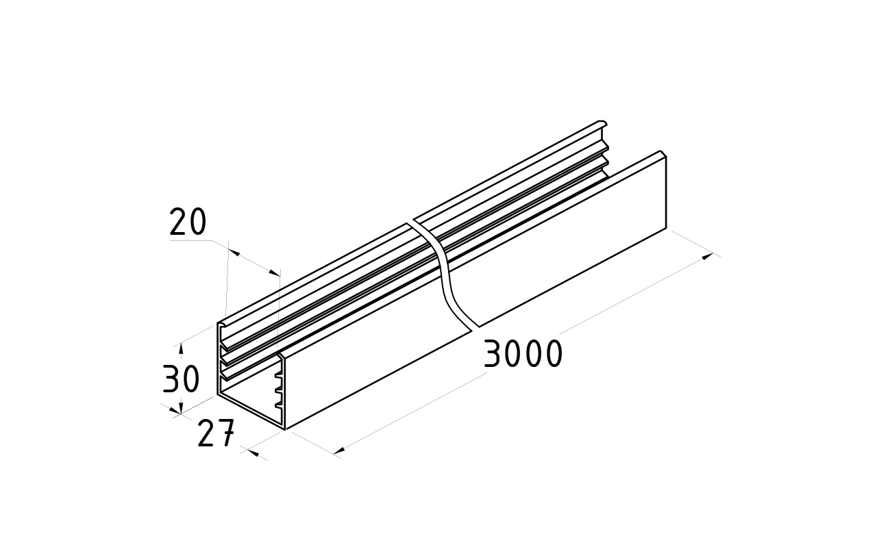 Уплотнитель в поручень с пазом 27х30 для стекла 10+10 мм, EPDM Фk308