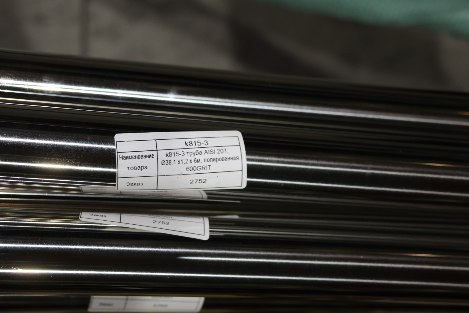 Труба круглая нержавеющая AISI 201, Ø38.1х1.2х6000 мм, полированная 600GRIT k815-3