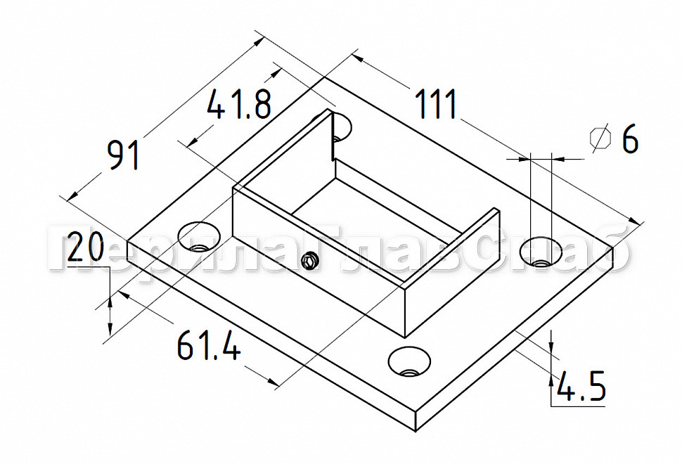 Фланец стойки 75 х75 х 5 (4,3) х AISI304, 4 отв. М10, с центральным отверстием k115-6 купить в Москве