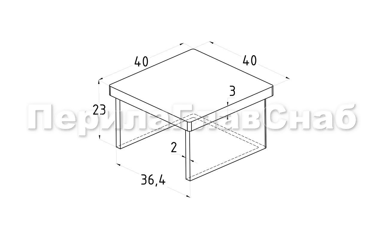 Заглушка для поручня с пазом 40x40 мм, полированная, хром (AISI 304) k547