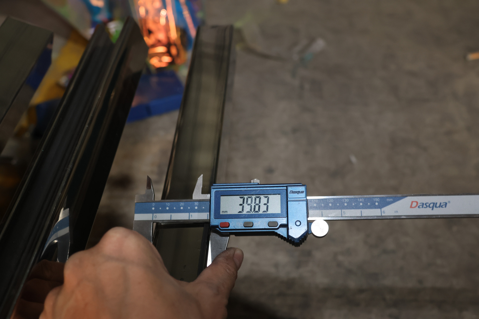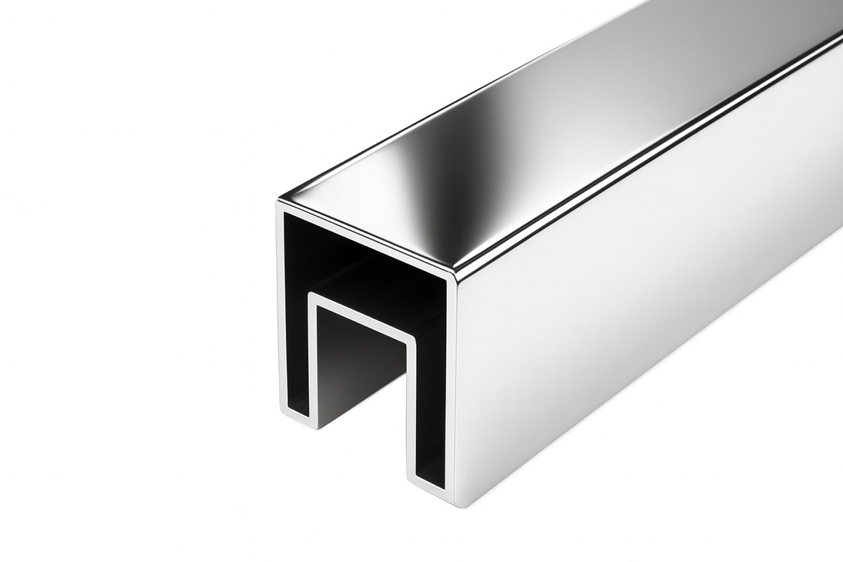 Труба 40х40 мм с пазом 24х24 мм под стекло, полировка, AISI 304 #600