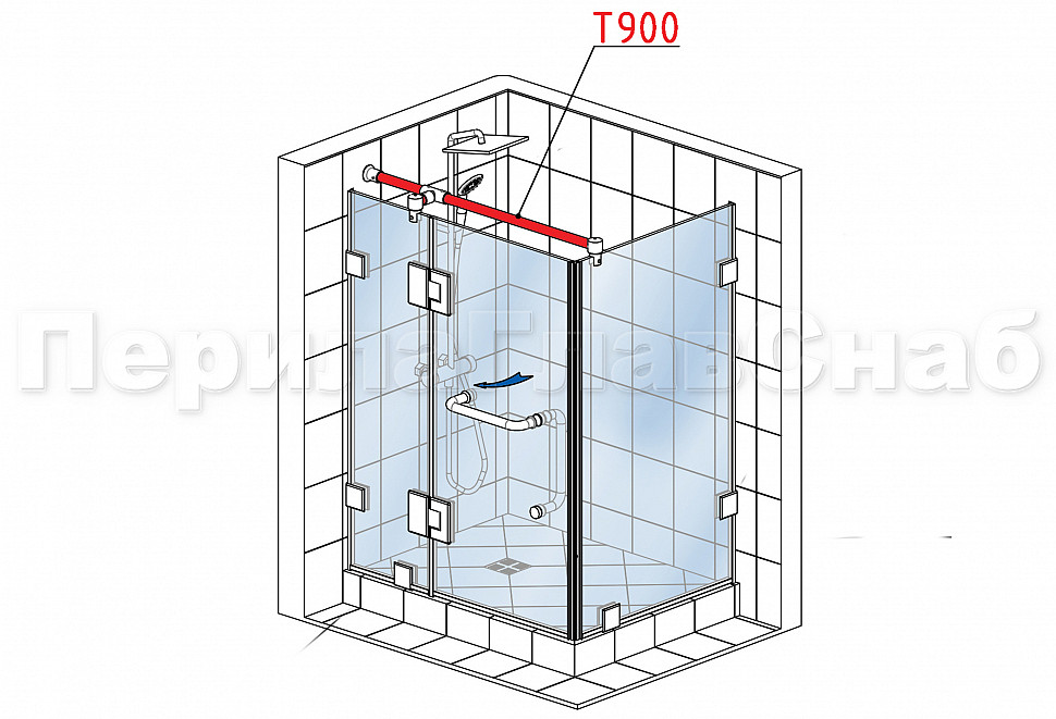 Трек из нержавеющей стали AISI304, полированный. Предназначен для крепления стекла в конструкции душевых перегородок разных конфигураций