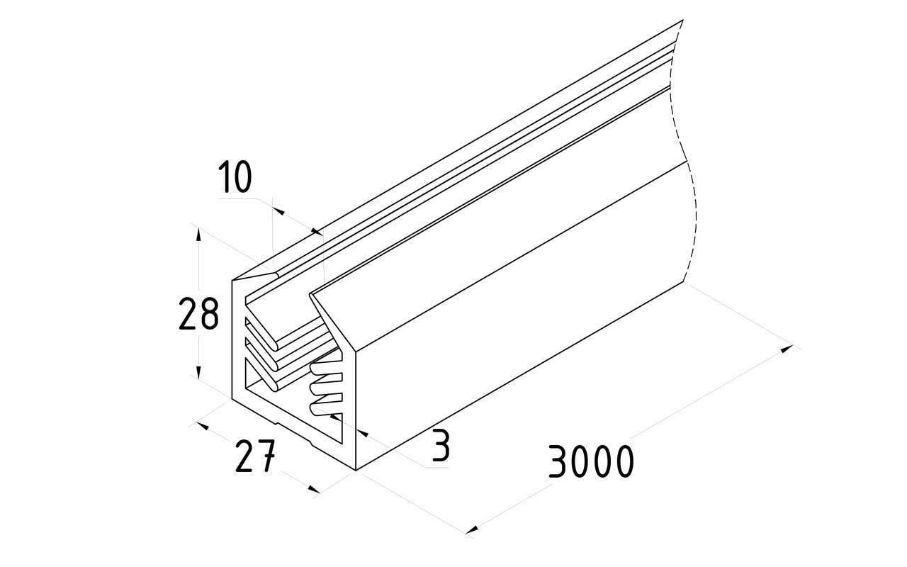 Уплотнитель в поручень с пазом 27х30 для стекла 10 мм, EPDM (палки 3 м) СЕРЫЙ Фk305-G