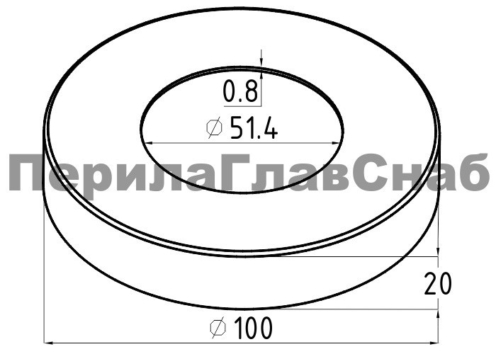 Низ стойки Ø50.8 мм, 100х18.5х0.8, полированный, (AISI 304) k217
