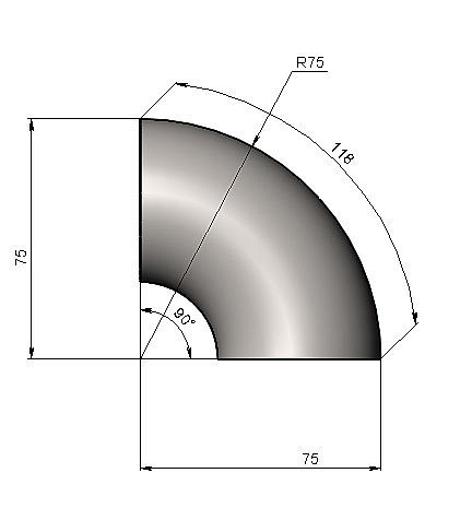 Отвод поручня под сварку для Ø50.8х118х1.5 мм, полированный 400 Grit, (AISI 201) k021-12
