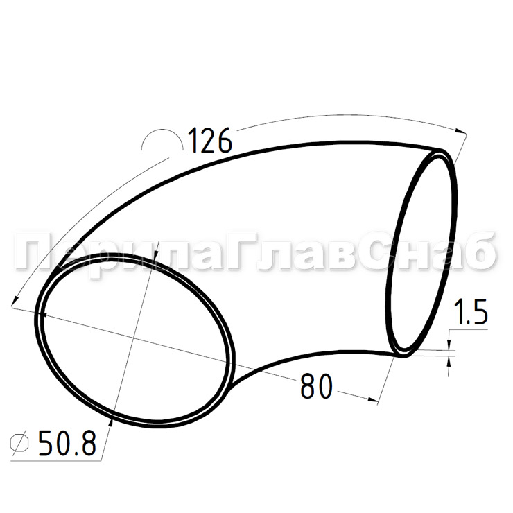 Отвод поручня под сварку для Ø50.8х125х1.5 мм, шлифованный (AISI 304) k021-4