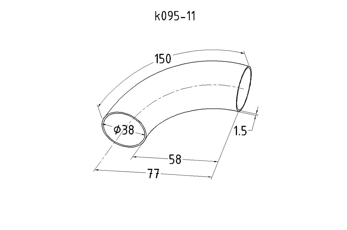 Отвод поручня под сварку Ø38.1х1.5 мм, 155 мм, 400 Grit, полир., AISI 304, k095-11