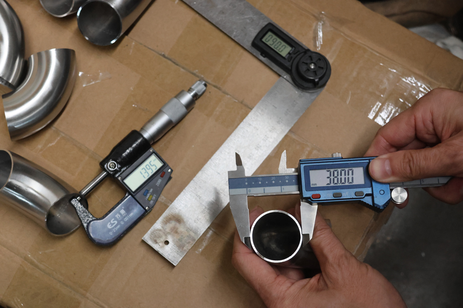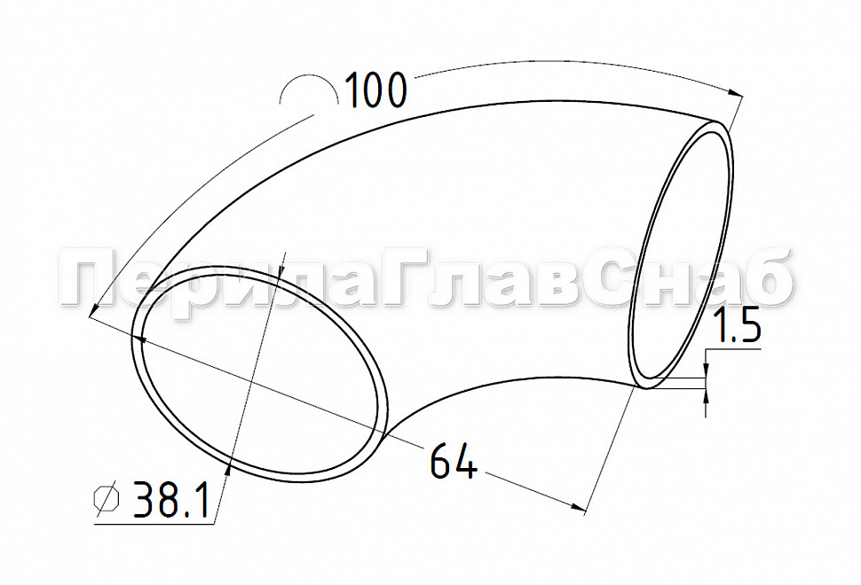Отвод поручня под сварку Ø38.1х100х1.45мм, 90°, шлифованный, (AISI 304) k095-3