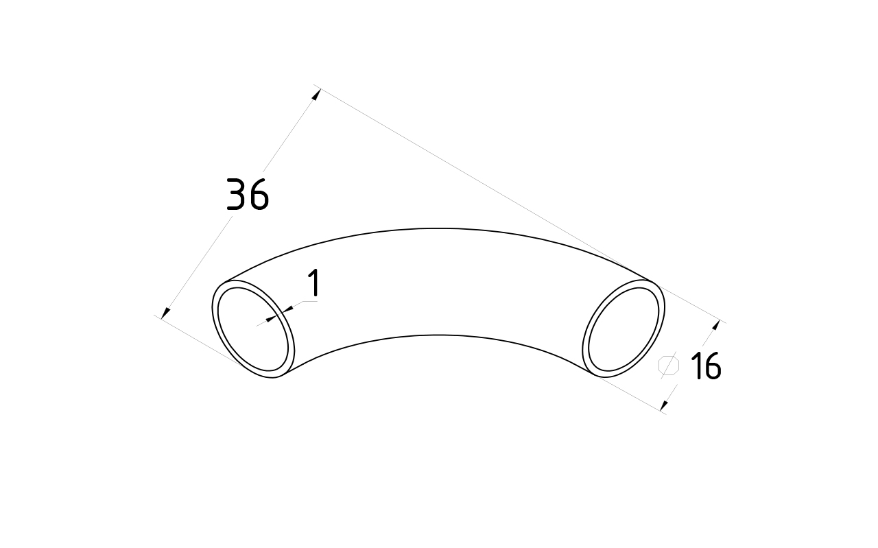 Отвод 16.0х52х1 мм, 90° полированный 400 Grit , AISI 201 k205-3