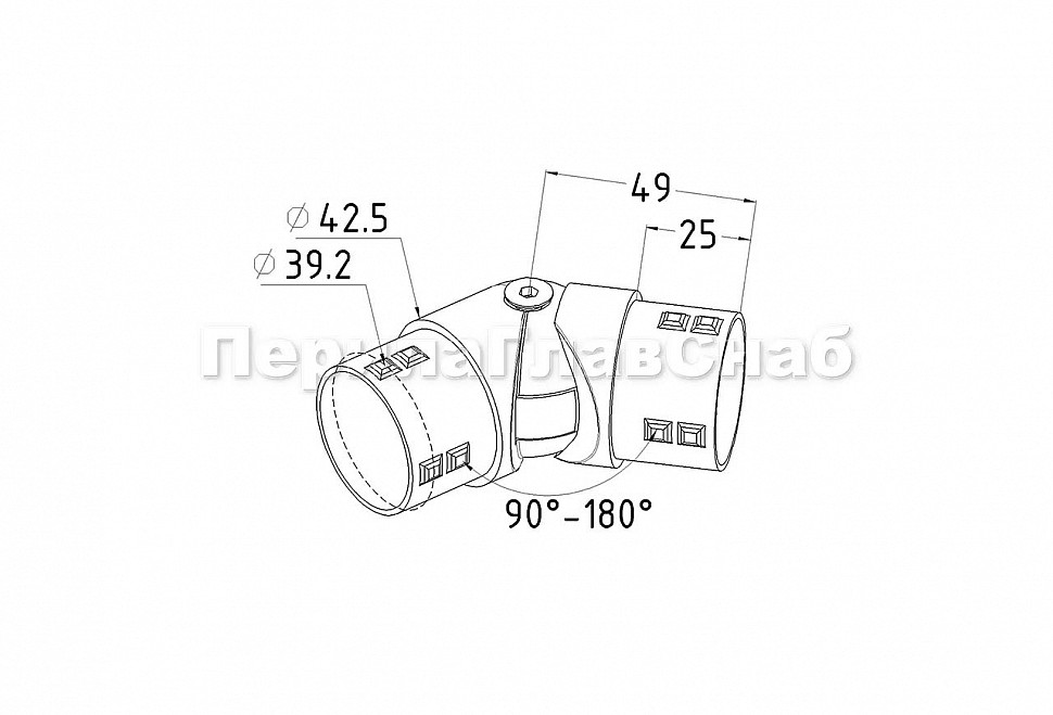 Поворот литой, шарнирный под Ø42.4 мм, полированный, AISI 304 k273