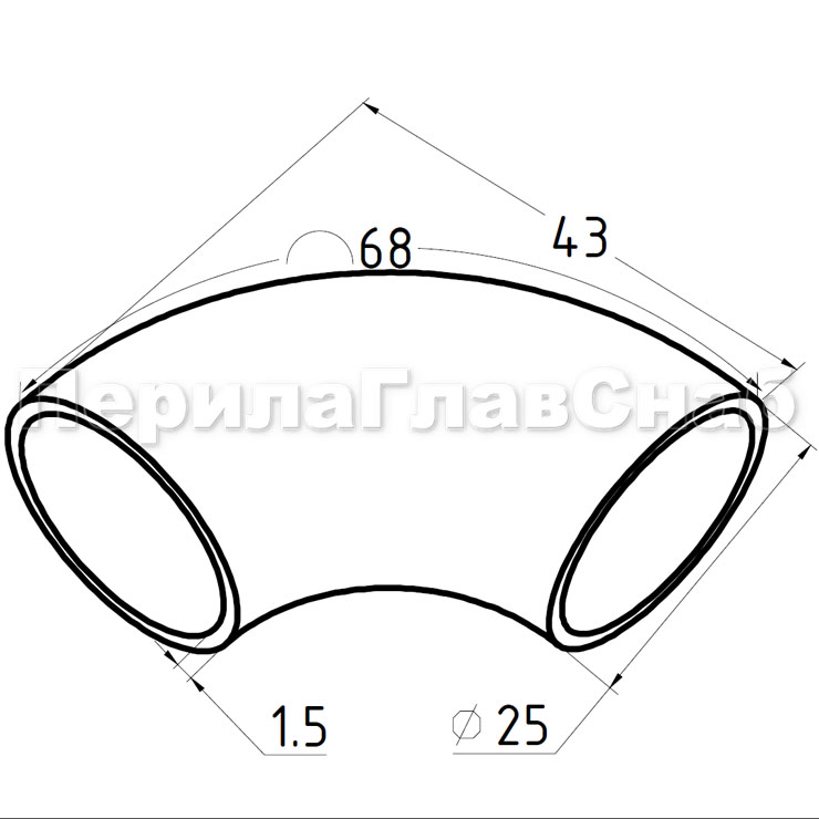 Отвод поручня Ø25.4 мм, 90°, полированный, (AISI 304) k347