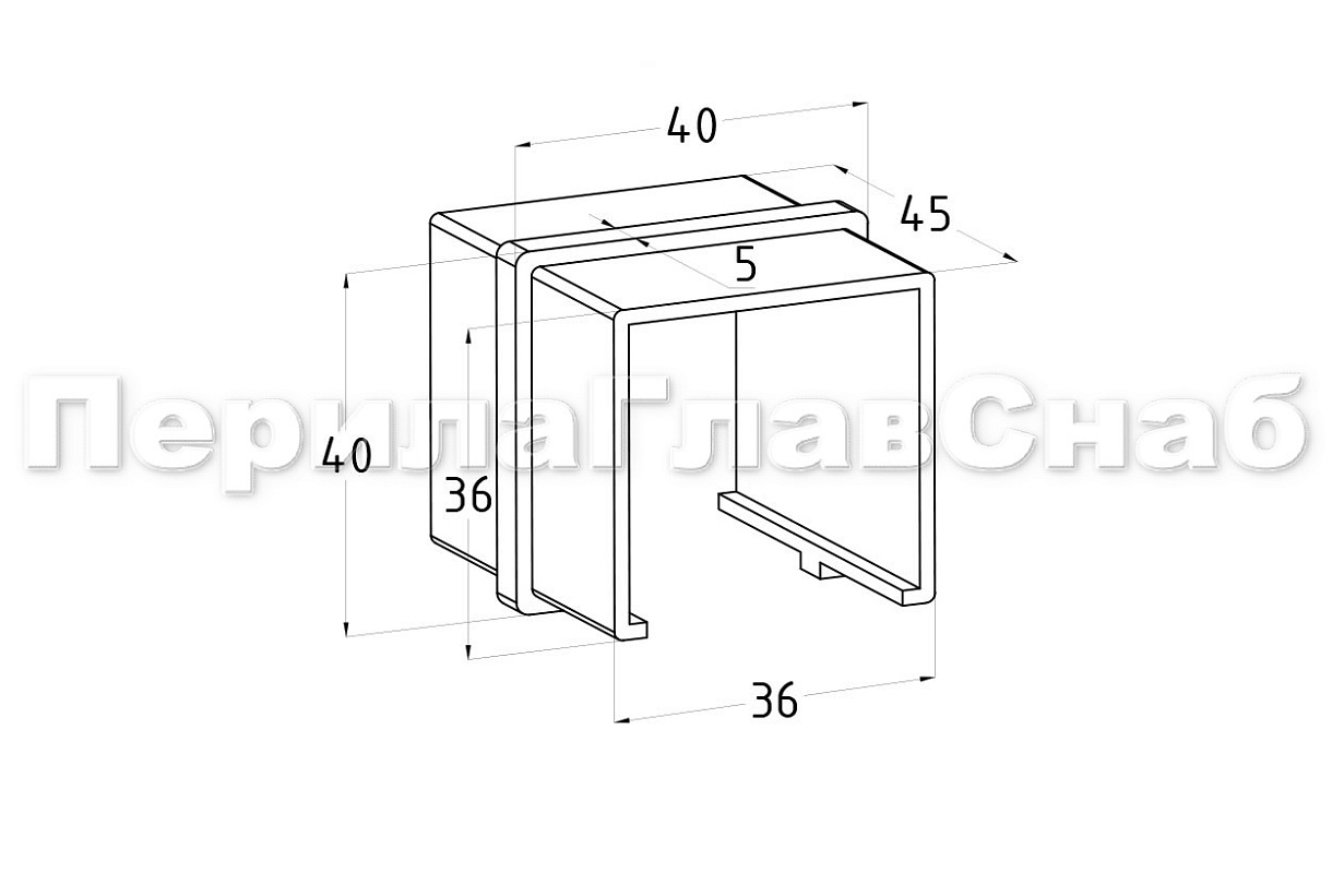 Соединитель для поручня с пазом 40х40 мм, полированный, (AISI 304) k545