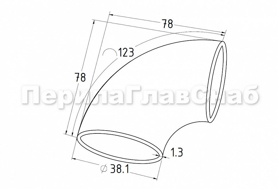 Отвод поручня под сварку удлиненный Ø38.1х1.5 мм, 800 Grit, полированный, (AISI 304) k095-5