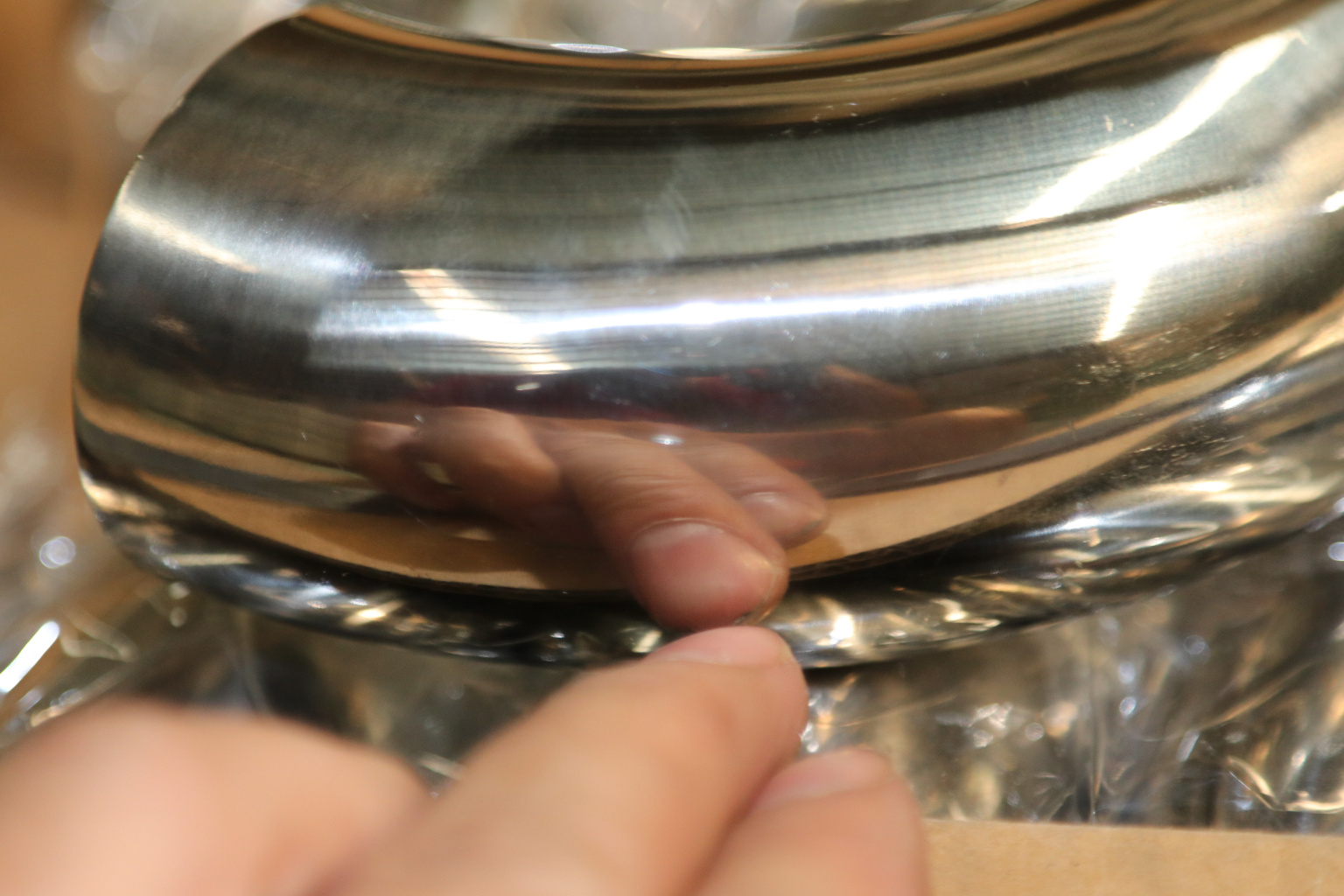 Сечение кромки отвода представляет собой круг. Отвод с самой распространенной полировкой в 400 Grit.