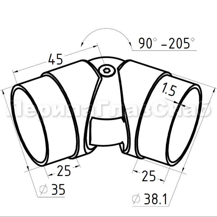 Поворот шарнирный под Ø38.1 мм, полированная, (AISI 304) k250
